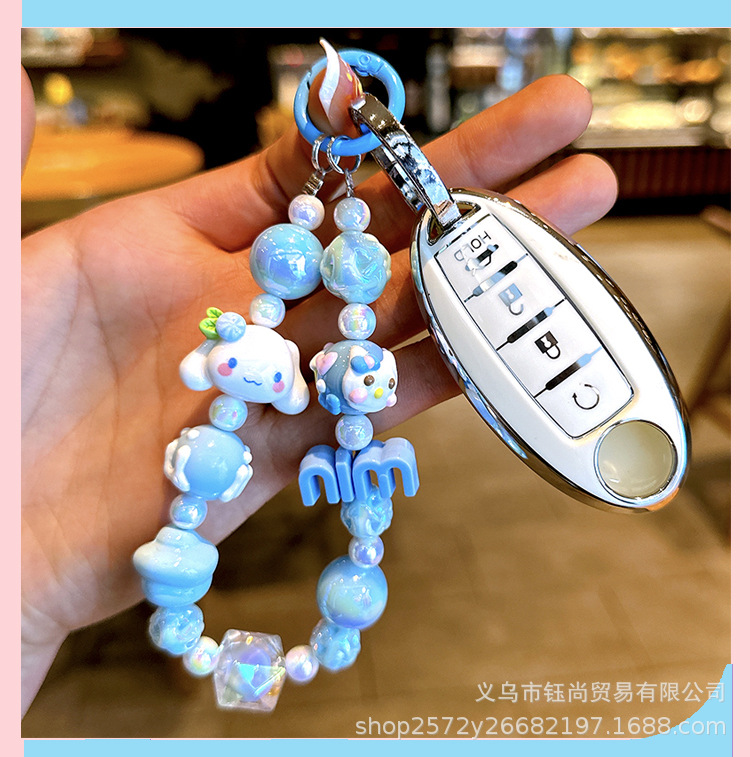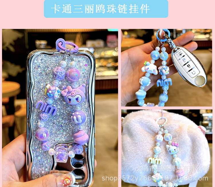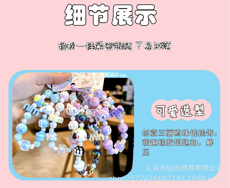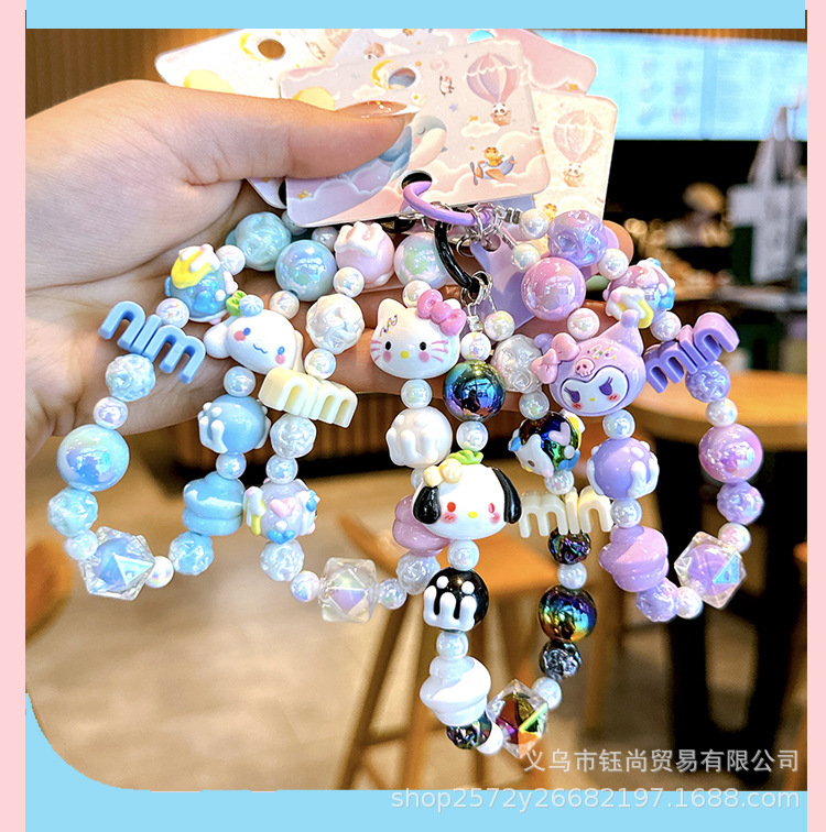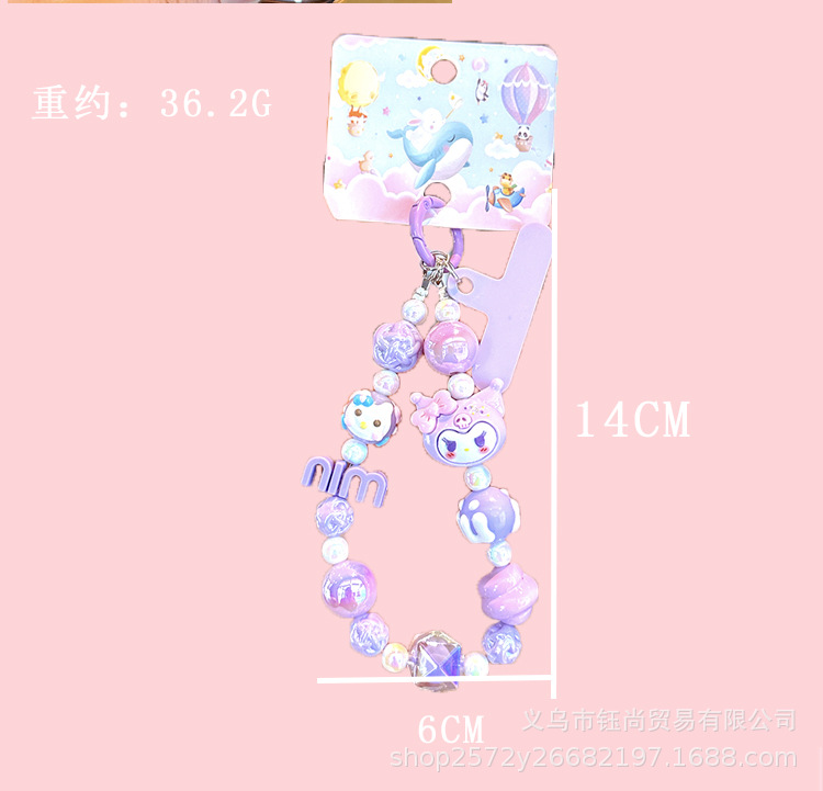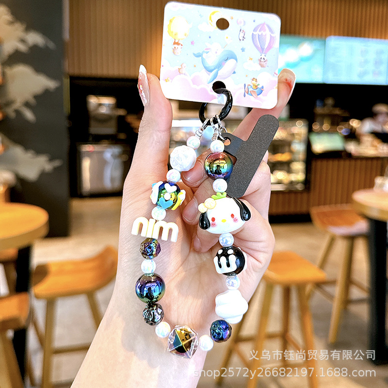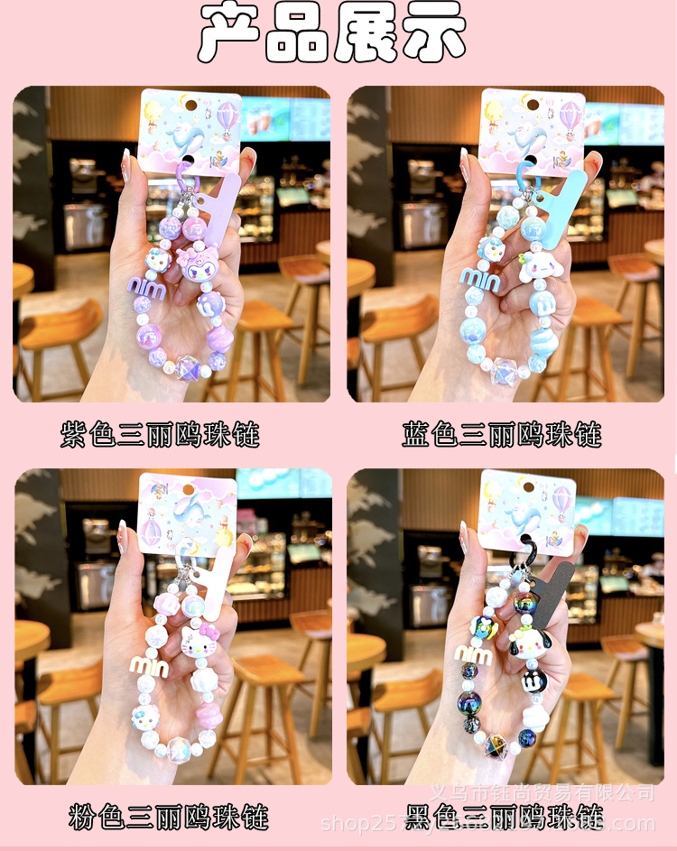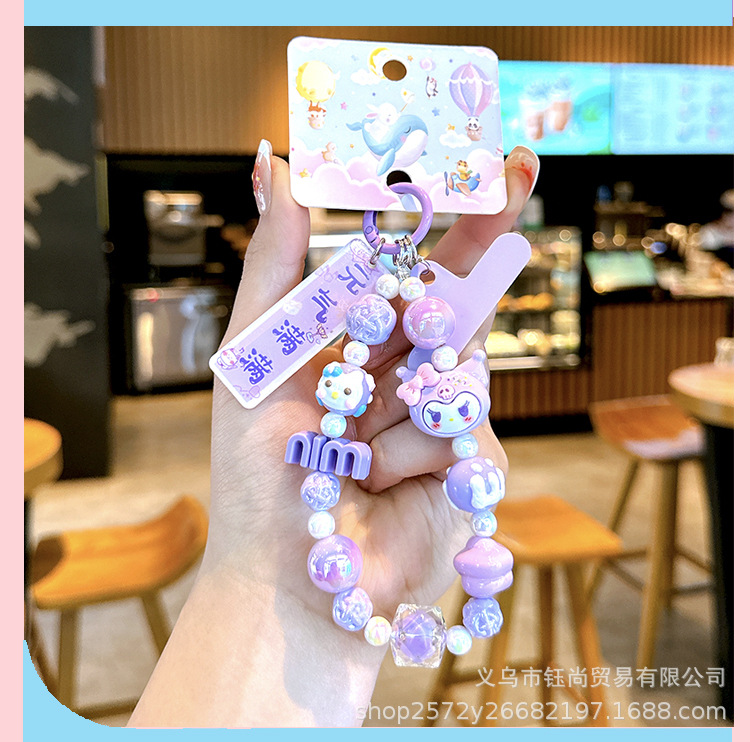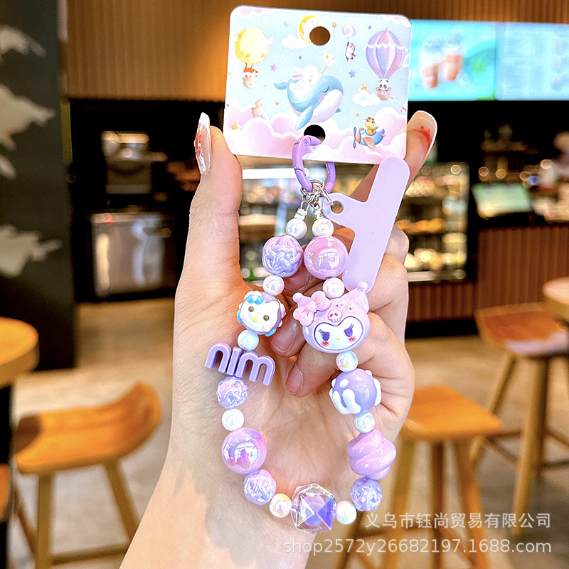 만화 산리오 휴대폰 스트랩 쿠로미 키티 고양이 인스 스타일 핸드페인팅 비즈 가방 장식 키체인스토어 가기