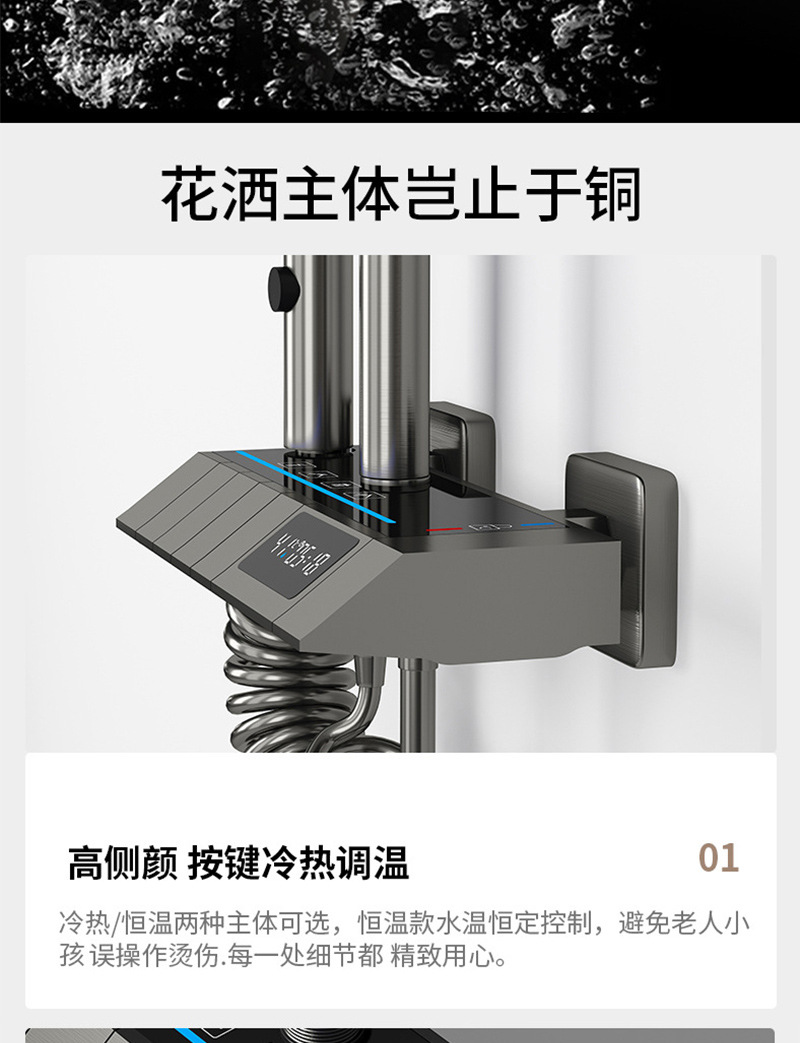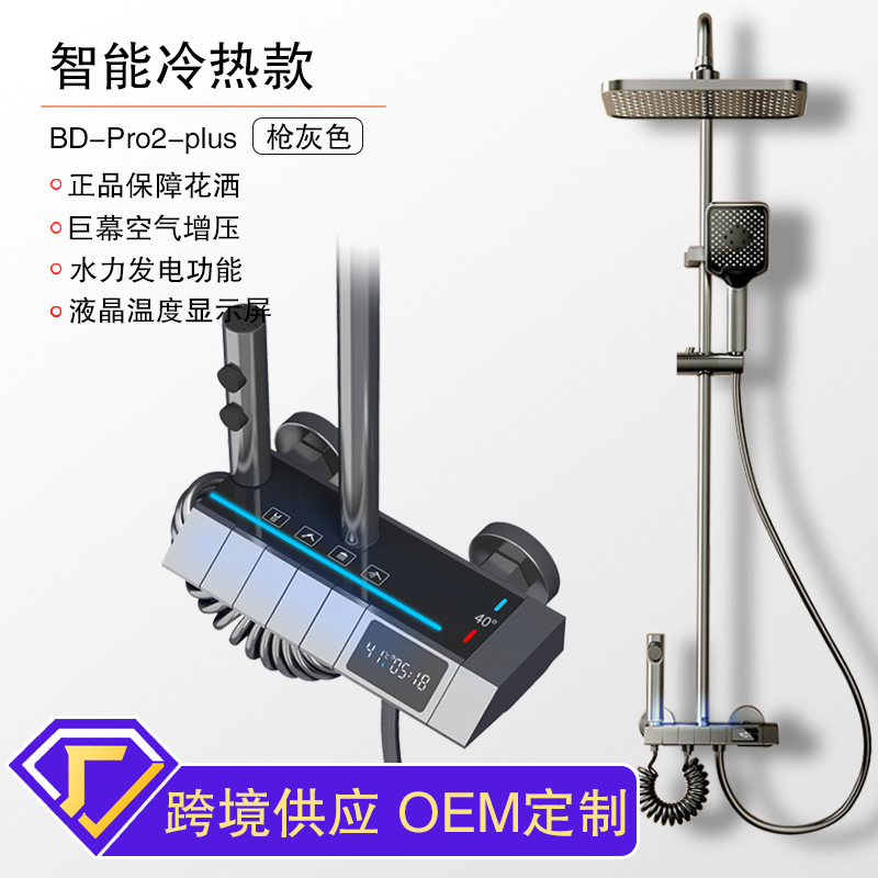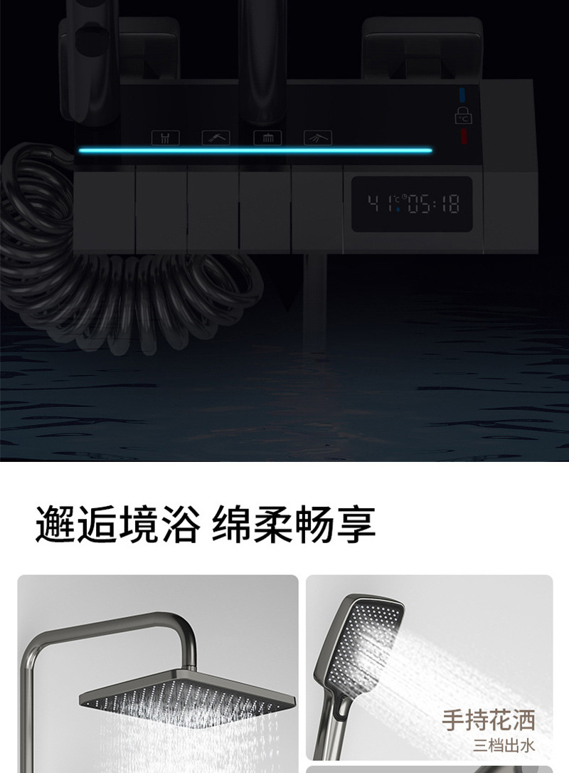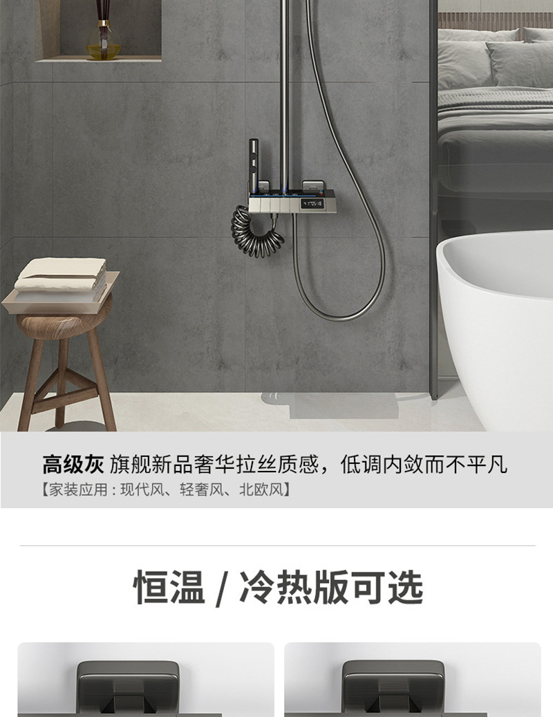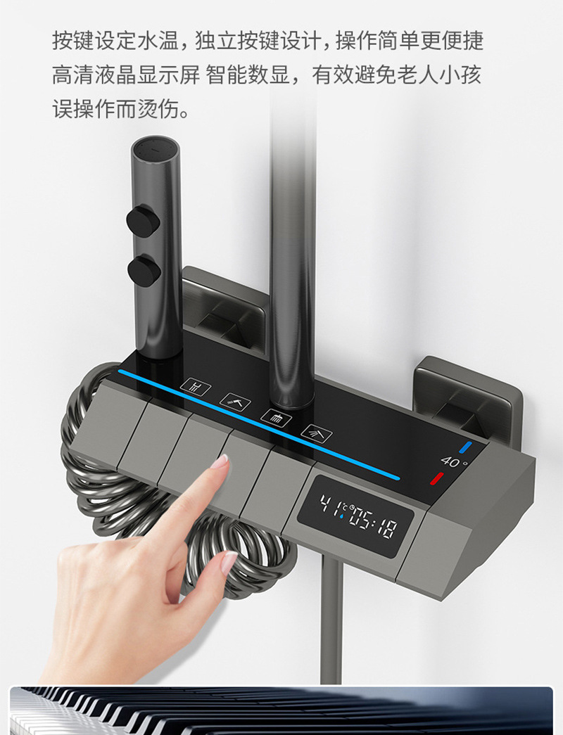 인기 샤워 세트 샤워 건 그레이 피아노 키 분위기 조명 호텔 욕실 홈 항온 디지털 디스플레이 부스터 샤워스토어 가기