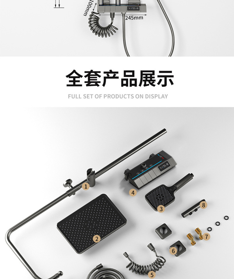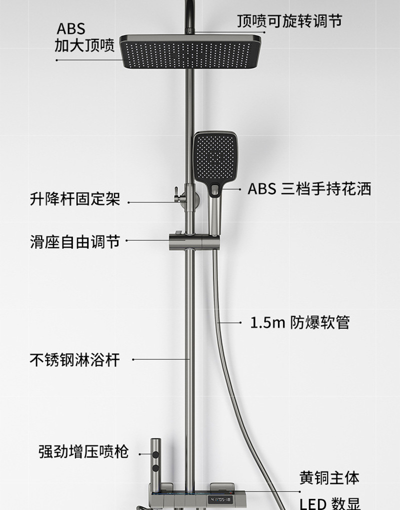 • 건 그레이 디지털 디스플레이 항공모함 4단 샤워기