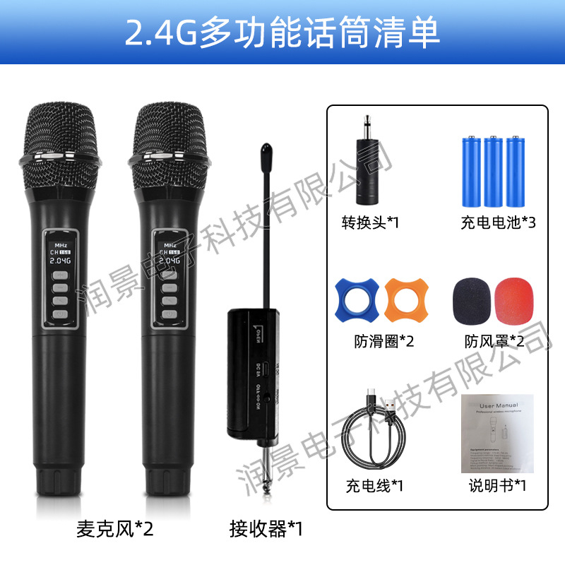 국경 간 2.4G 무선 마이크 충전 1-2 홈 사운드 카드 라이브 방송 노래방 전문 휴대용 무선 마이크