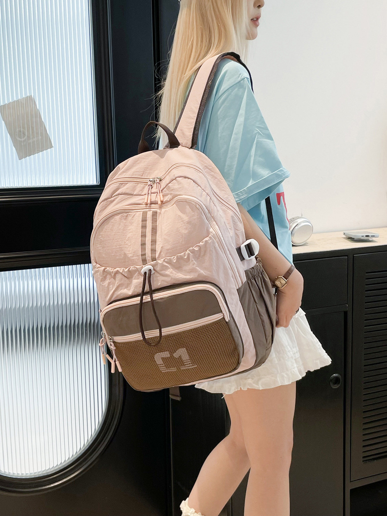 국경 간 핫 드로우 스트링 백팩 여성 스포츠 경량 나일론 방수 대용량 학생 스쿨백 전자 상거래 독점스토어 가기