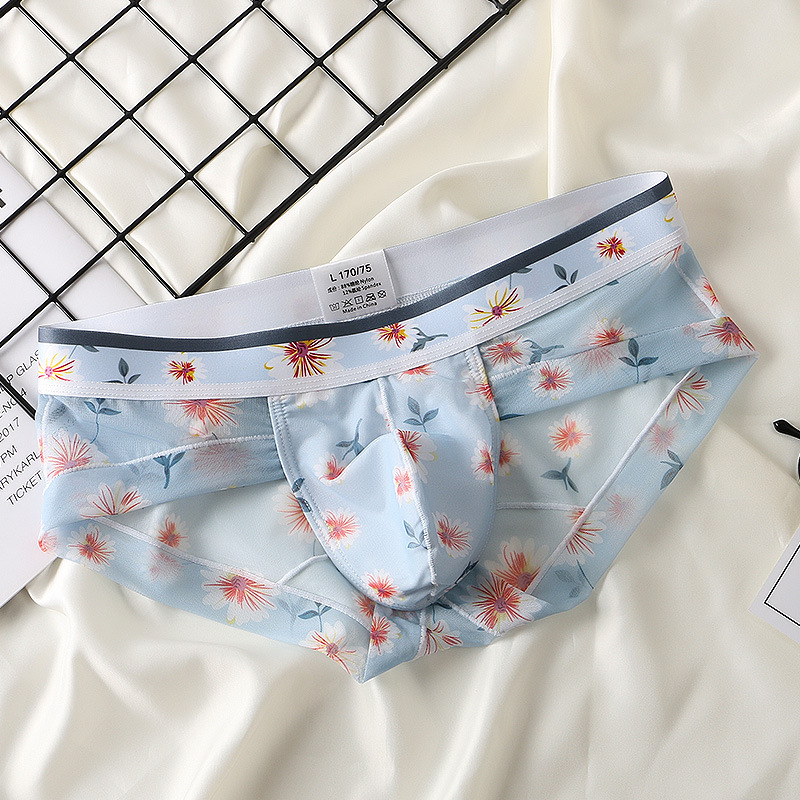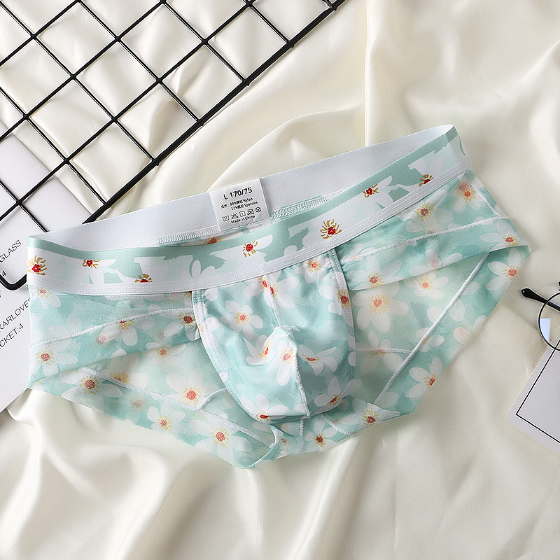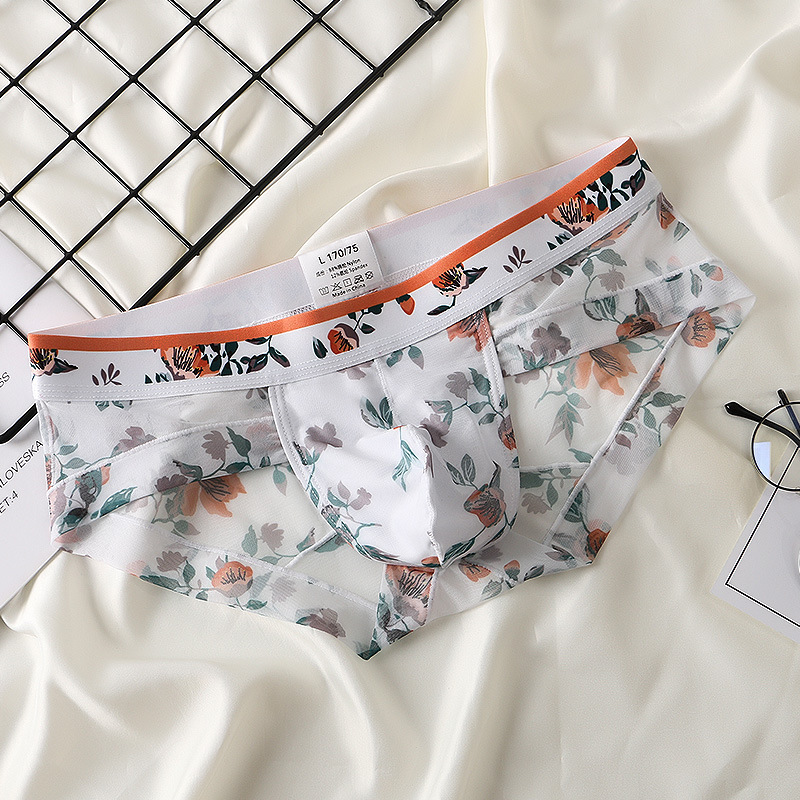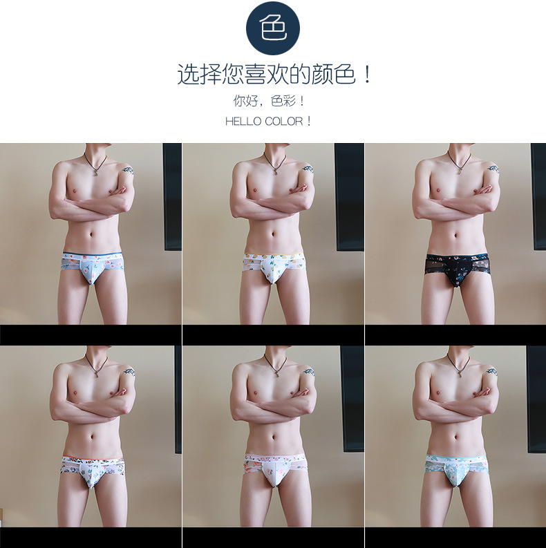 남성용 속옷 프린트 아이스 실크 속건 메쉬 투명 섹시 U자형 대형 포켓 청소년 남성 삼각 팬티스토어 가기