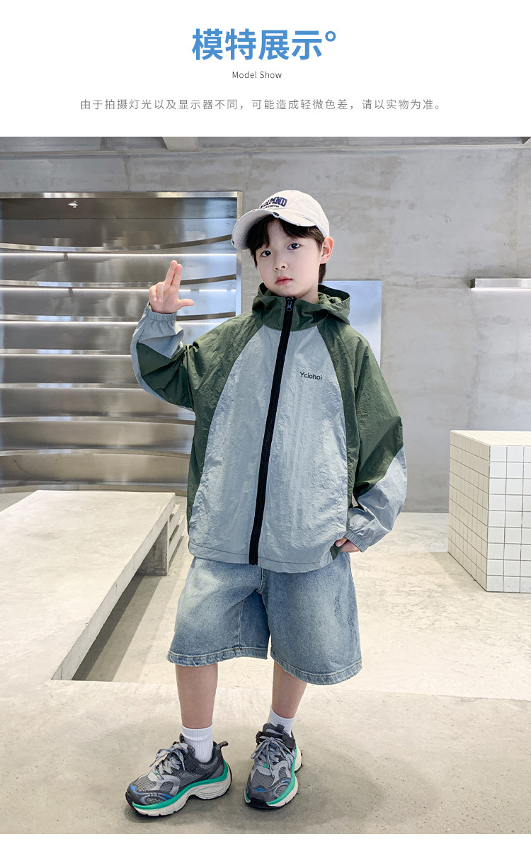 소년 여름 얇은 자외선 차단 의류 2025 새로운 어린이 색상 일치 속건 재킷 중대형 어린이 여름 자외선 차단 의류 유행