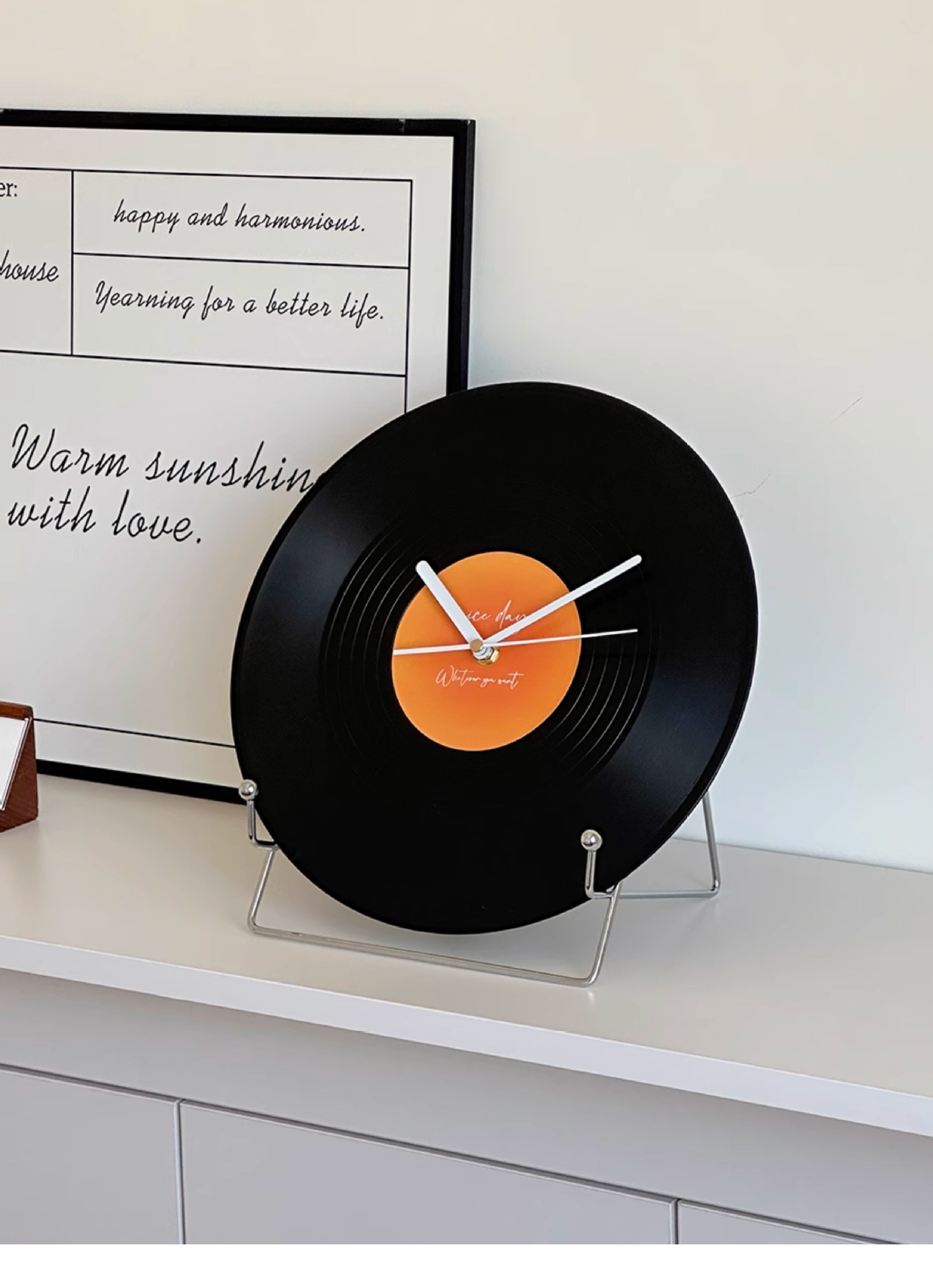 빈티지 비닐 레코드 시계 일몰 벽 시계 거실 사무실 책상 바탕 화면 장식 와인 캐비닛 TV 벽 장식