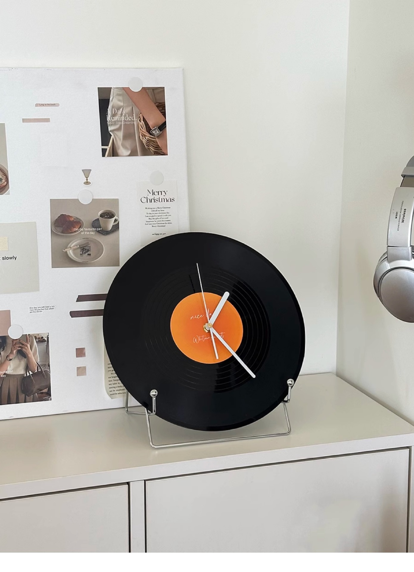 빈티지 비닐 레코드 시계 일몰 벽 시계 거실 사무실 책상 바탕 화면 장식 와인 캐비닛 TV 벽 장식스토어 가기