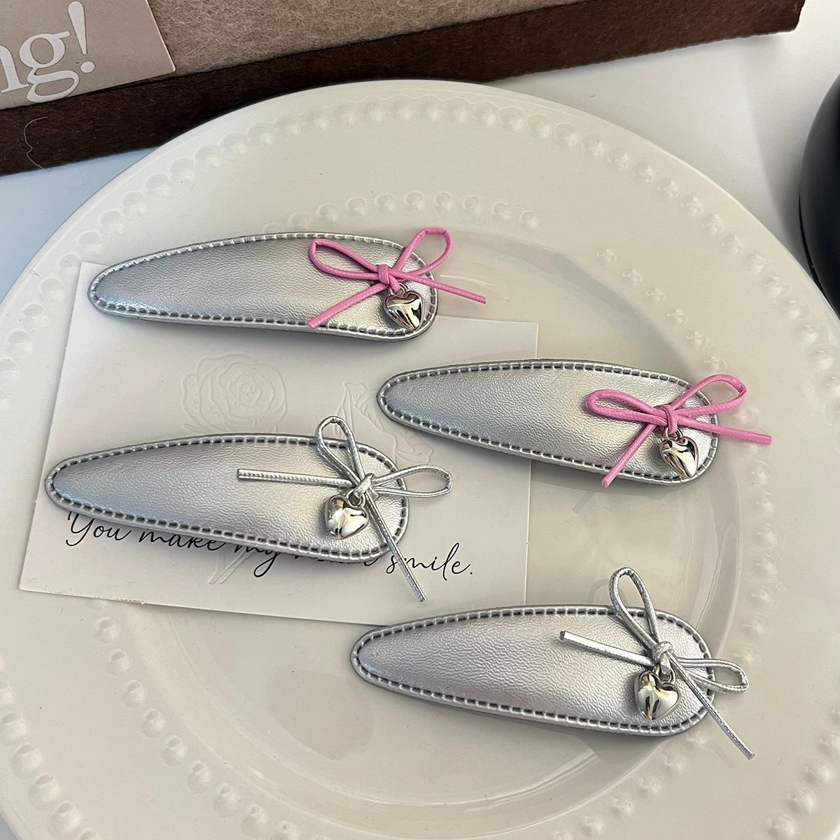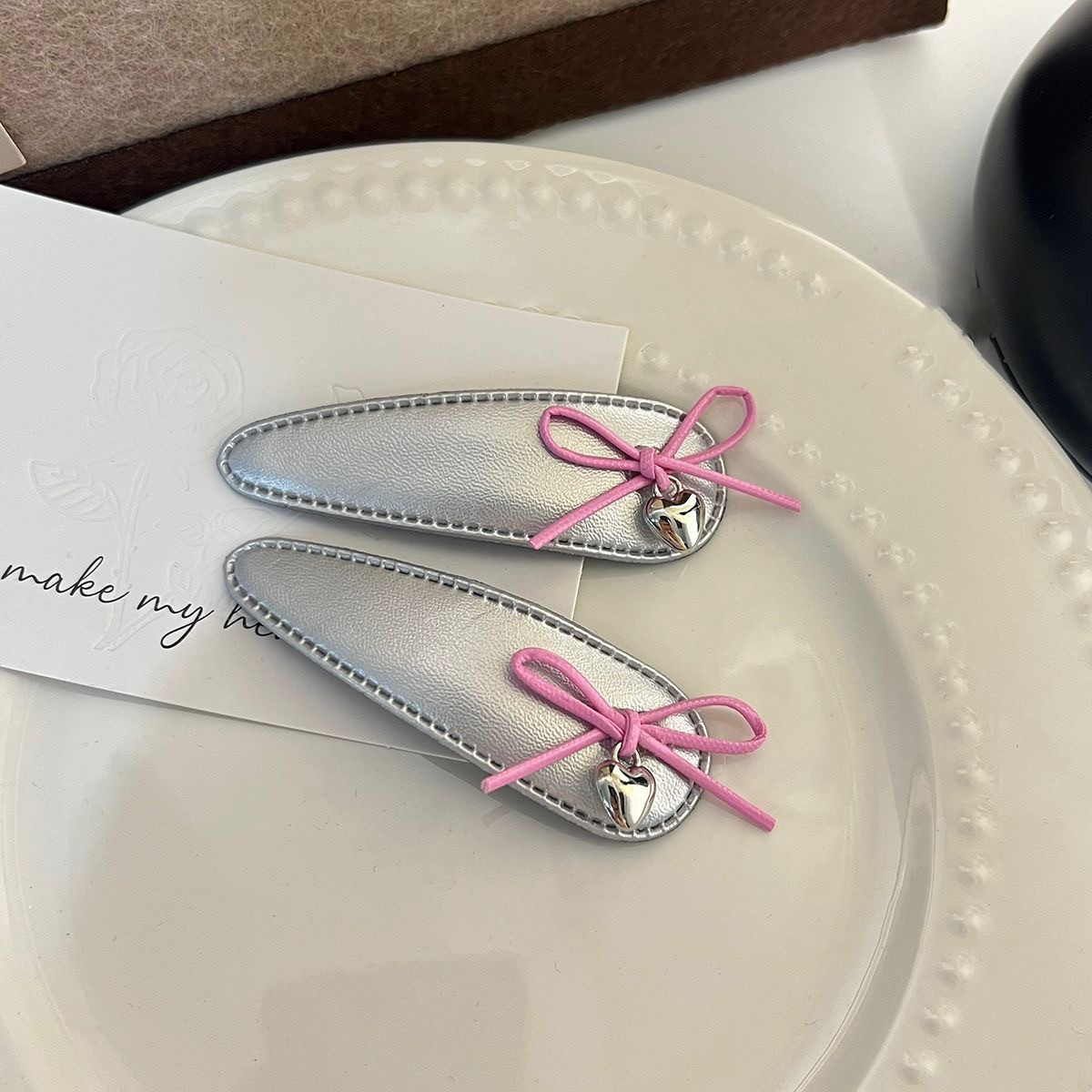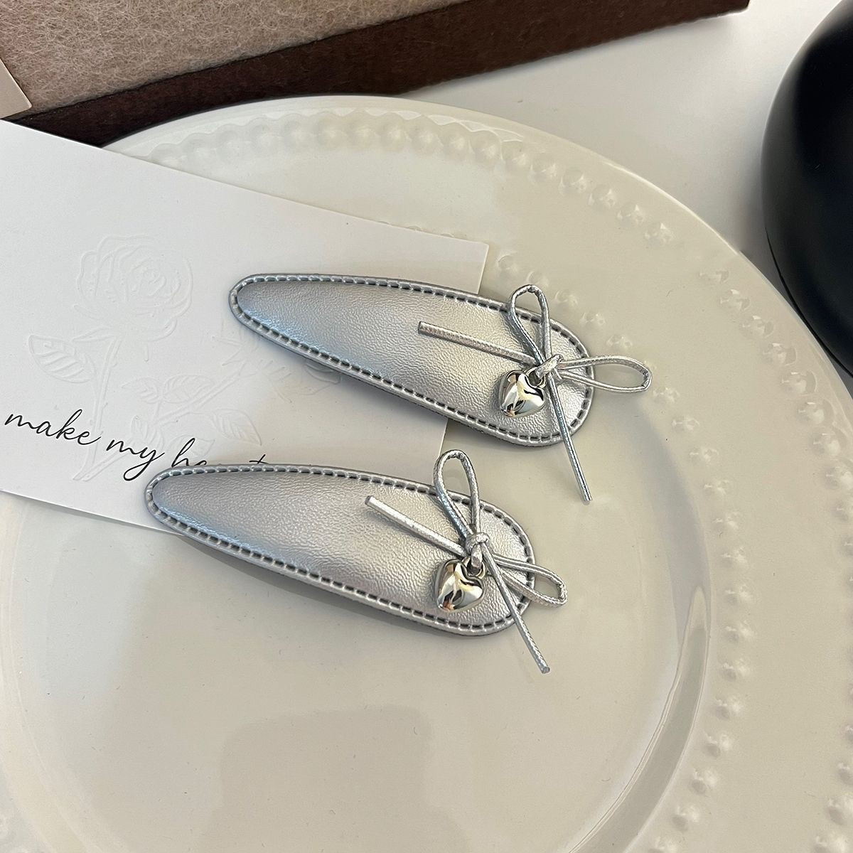 달콤한 2025 실버 가죽 활 헤어핀 뱅이 클립 사이드 클립 BB 클립 헤어 액세서리 새로운 섬유 헤드웨어