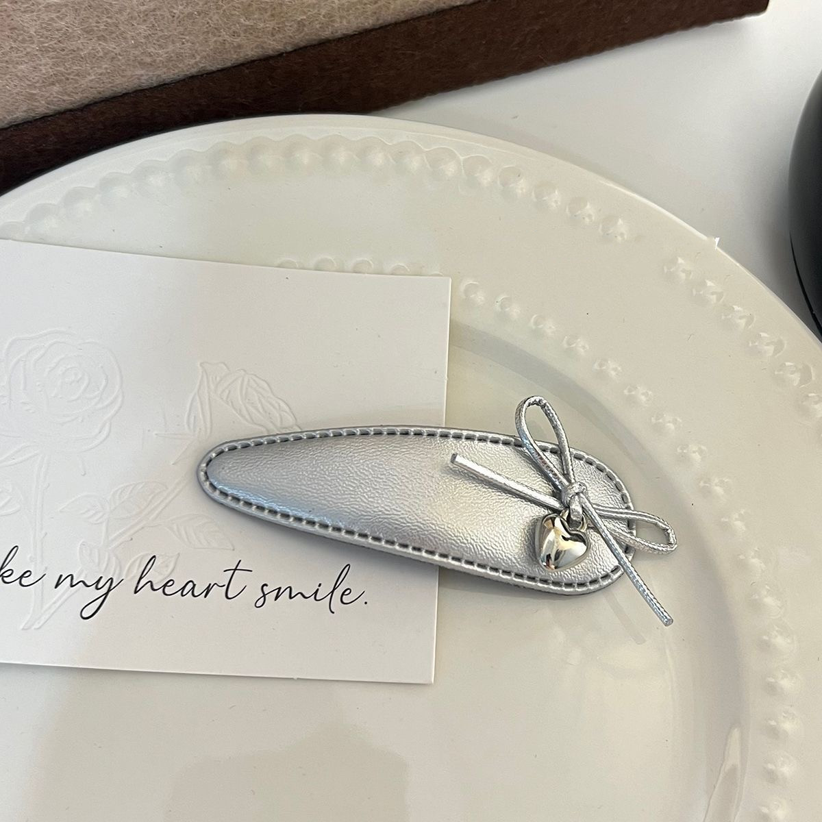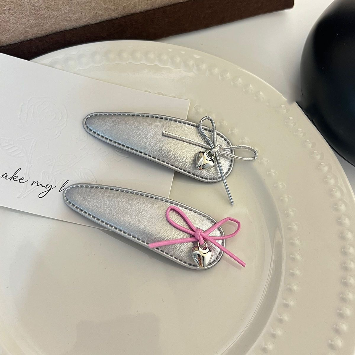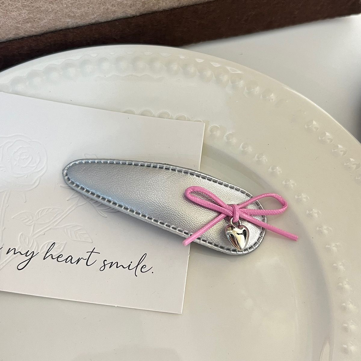 달콤한 2025 실버 가죽 활 헤어핀 뱅이 클립 사이드 클립 BB 클립 헤어 액세서리 새로운 섬유 헤드웨어