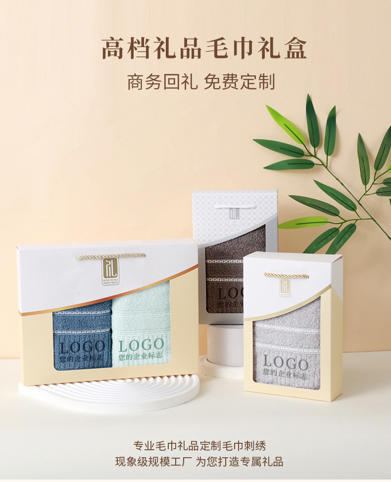 순수한면 수건 선물 상자 간단한 활동 선물 회사 복지 결혼식 반환 선물 손 자수 로고