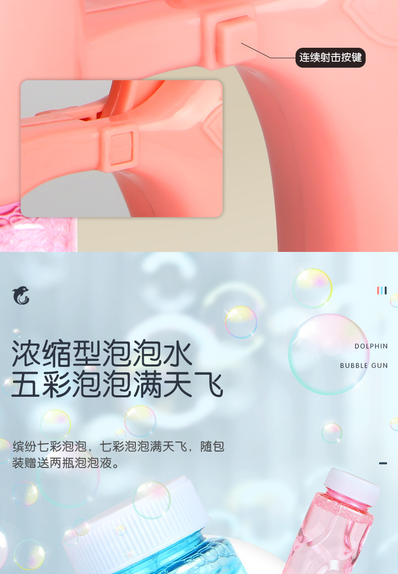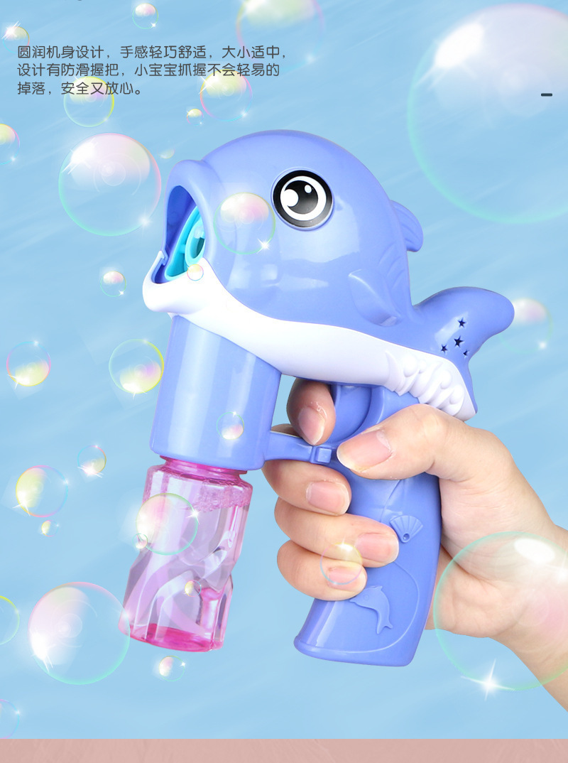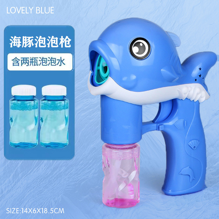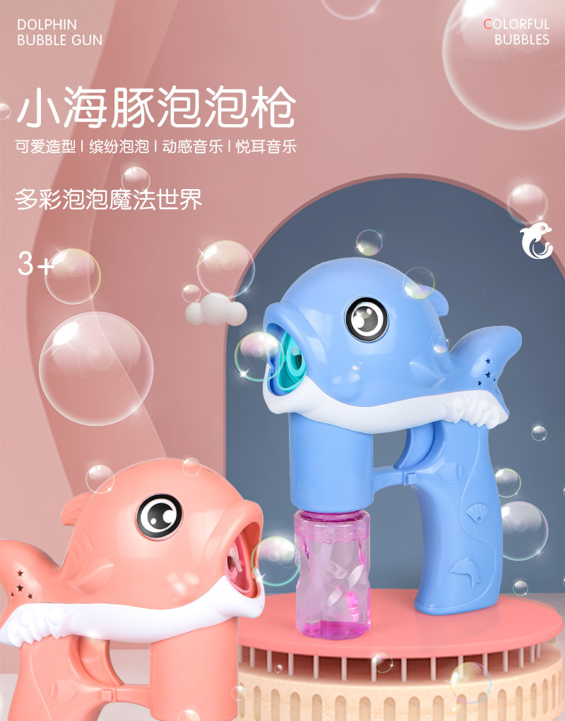 어린이 돌고래 전기 거품 총 전기 음악 빛 거품 총 인터넷 인기 버블 기계 자동 블로우 스톨 장난감스토어 가기