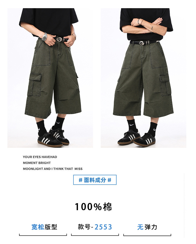 Muqiu 남성복 ∠ 미국 스타일 트렌디 브랜드 멀티 포켓 크롭 캐주얼 오버볼 남성 여름 느슨한 스트레이트 빈티지 반바지스토어 가기