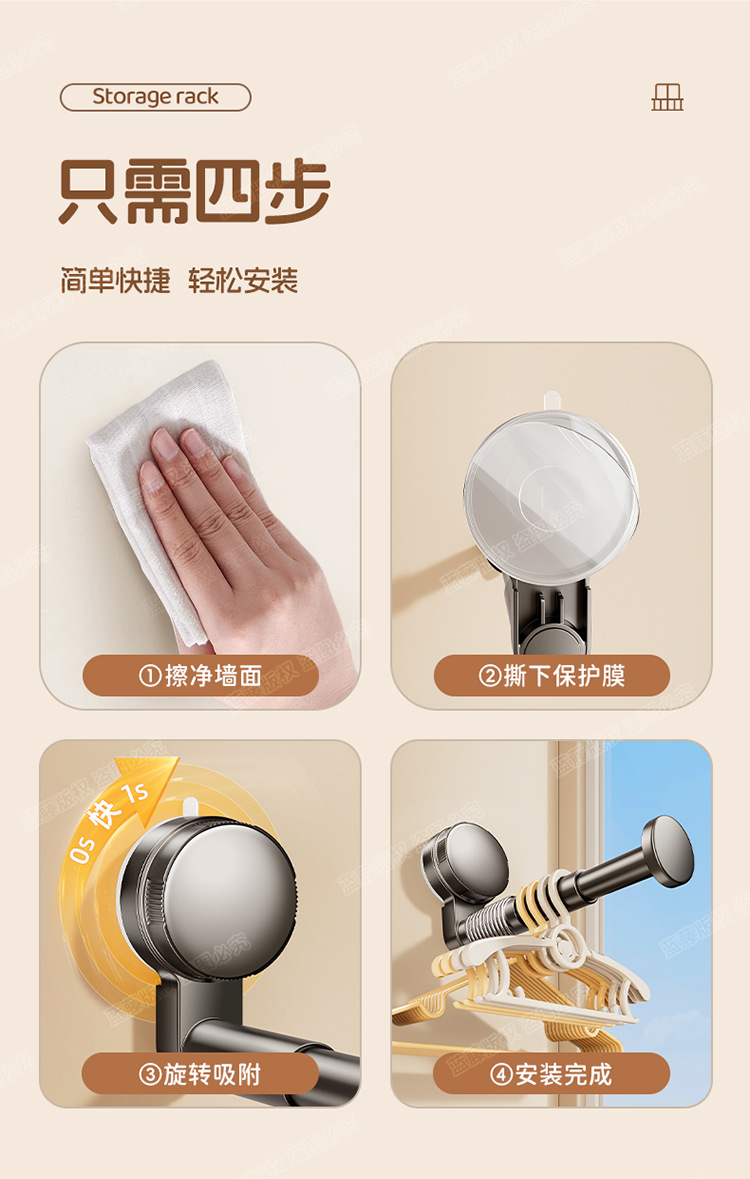 흡입 컵 행거 저장 텔레스코픽 펀치없는 가정용 욕실 발코니 인공물 벽걸이 의류 건조 랙