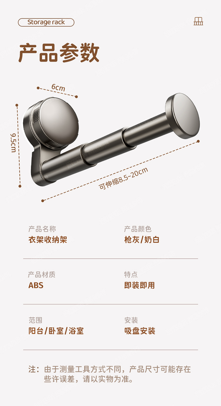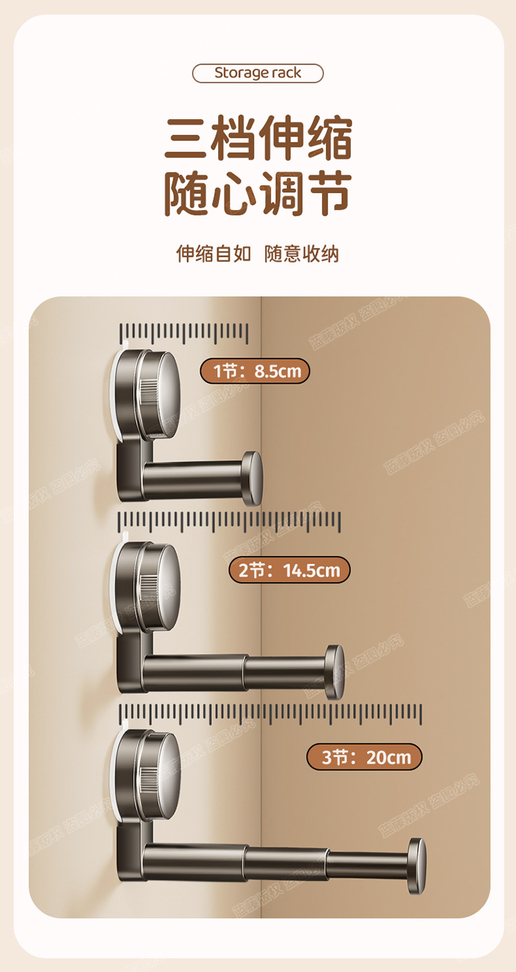 • Gun Ash-흡입 컵 텔레스코픽 행거 막대 2팩