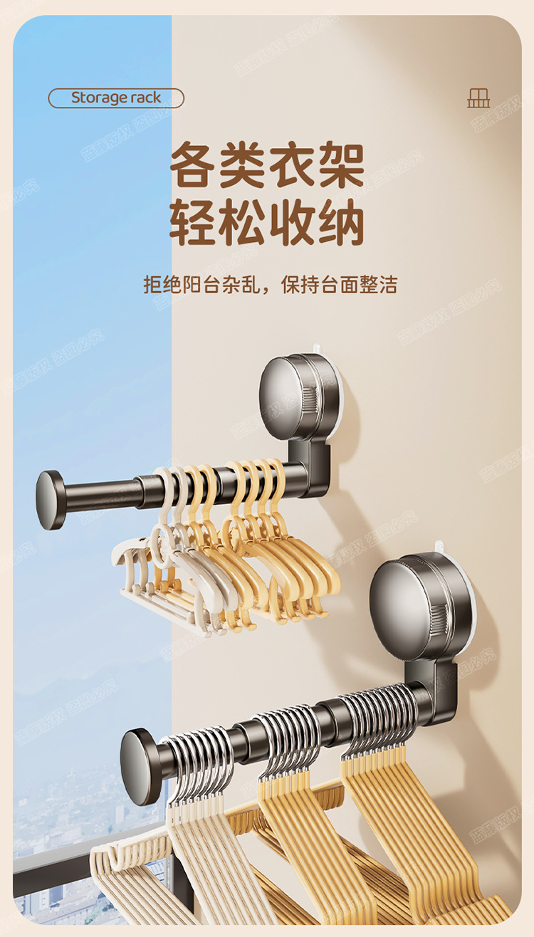 흡입 컵 행거 저장 텔레스코픽 펀치없는 가정용 욕실 발코니 인공물 벽걸이 의류 건조 랙스토어 가기