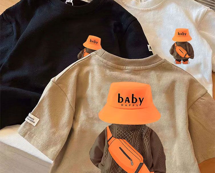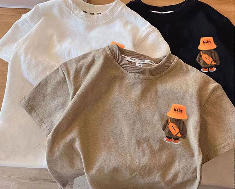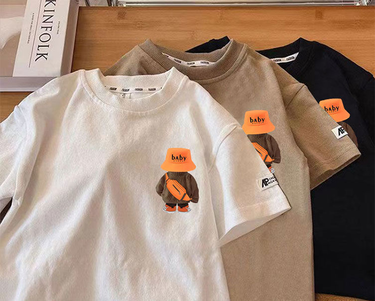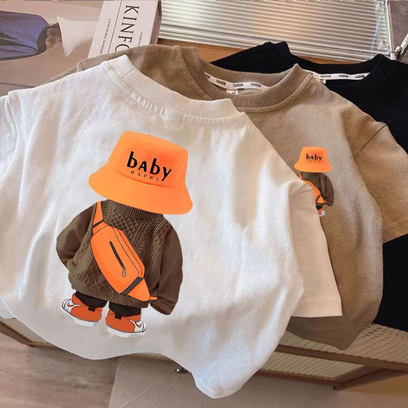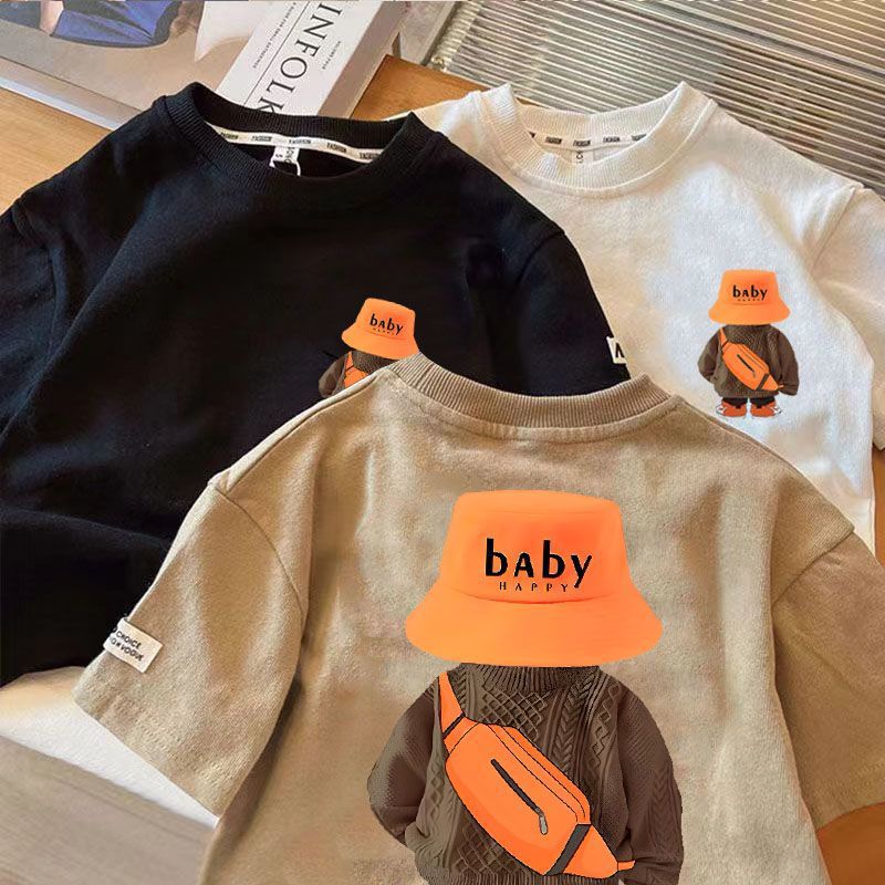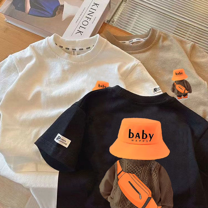 새로운 어린이 면화 반소매 여름 한국식 소년 소녀 티셔츠 탑 잘 생긴 서양식 여름 아기 Bottoming T-slebes스토어 가기
