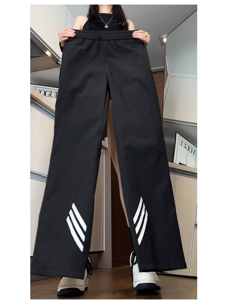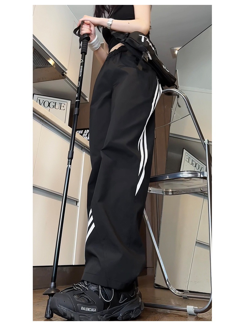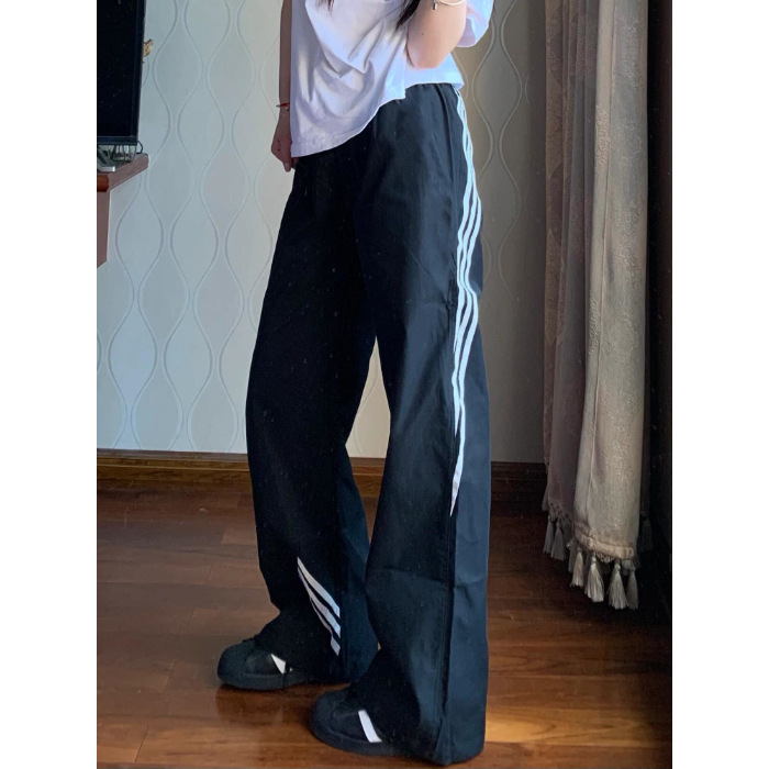 여름 여성을 위한 미국식 기능성 3줄 스트라이프 팬츠, 얇은 학생 한국식 캐주얼 스포츠 와이드 레그 롱 팬츠 블랙스토어 가기