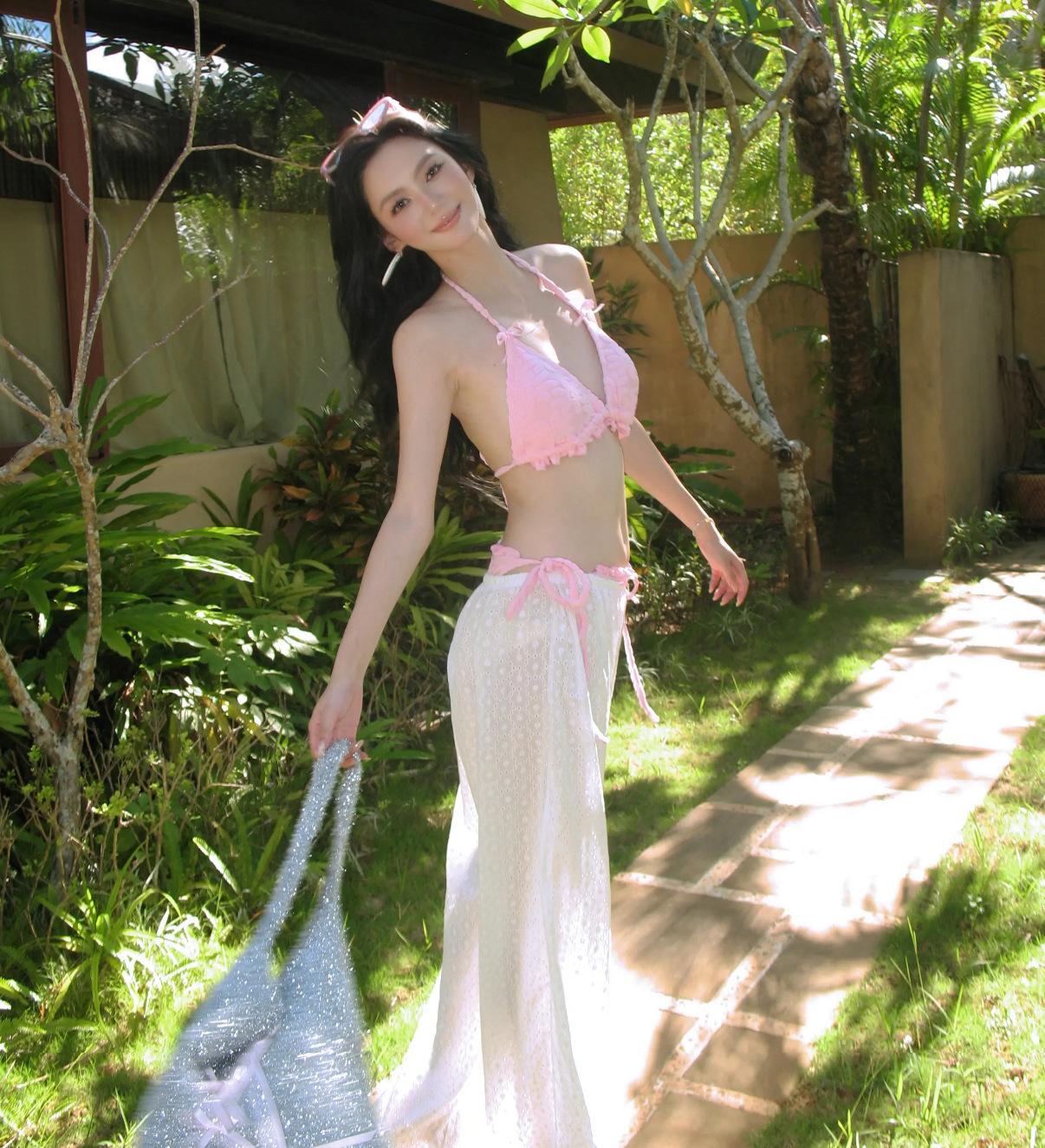 2025 순수 비키니 3 조각 바지 슬림 사진 멋진 온천 해변 해변 휴일 수영복스토어 가기