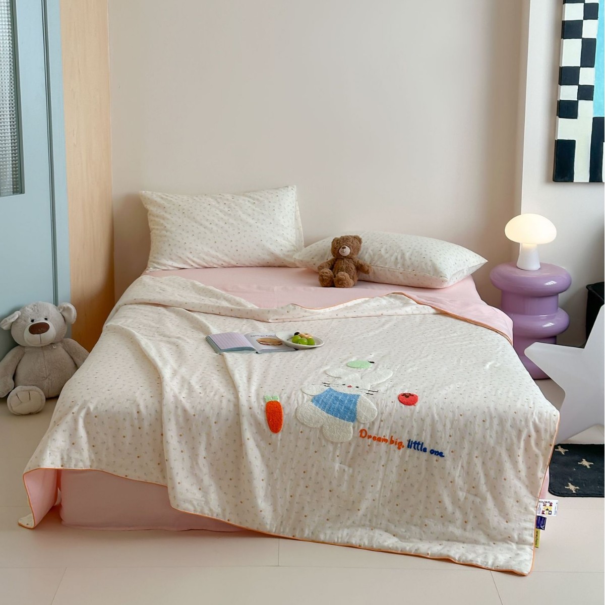 织梦街夏被系列,集可爱设计、优质面料、精细工艺、严格质检、环保包装于一身,是夏日睡眠的贴心伴侣。选择织梦街,让夏日夜晚充满温馨与舒适。