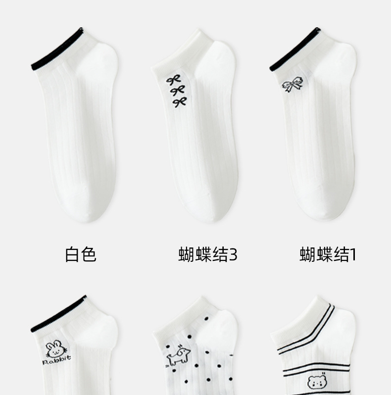 여름 여성을 위한 맞춤형 양말, 순면, 통기성 자카드 만화 패턴, 귀여운 양말, 항균, 땀 흡수성, 뼈없는 보트 양말