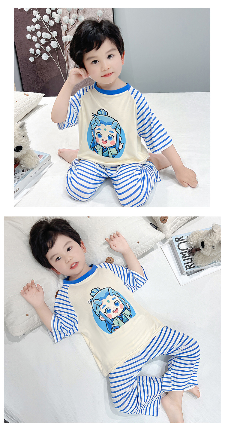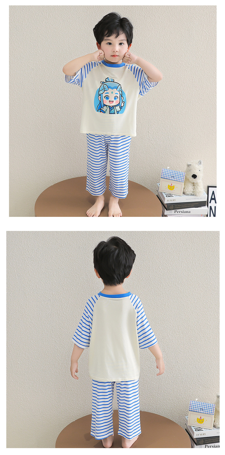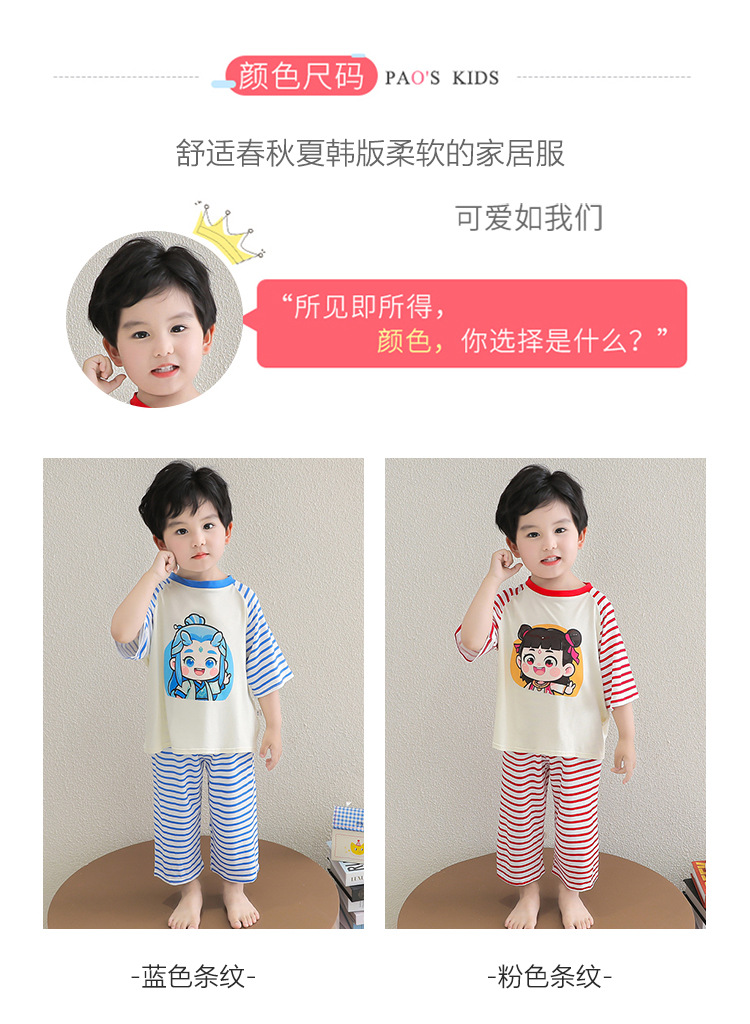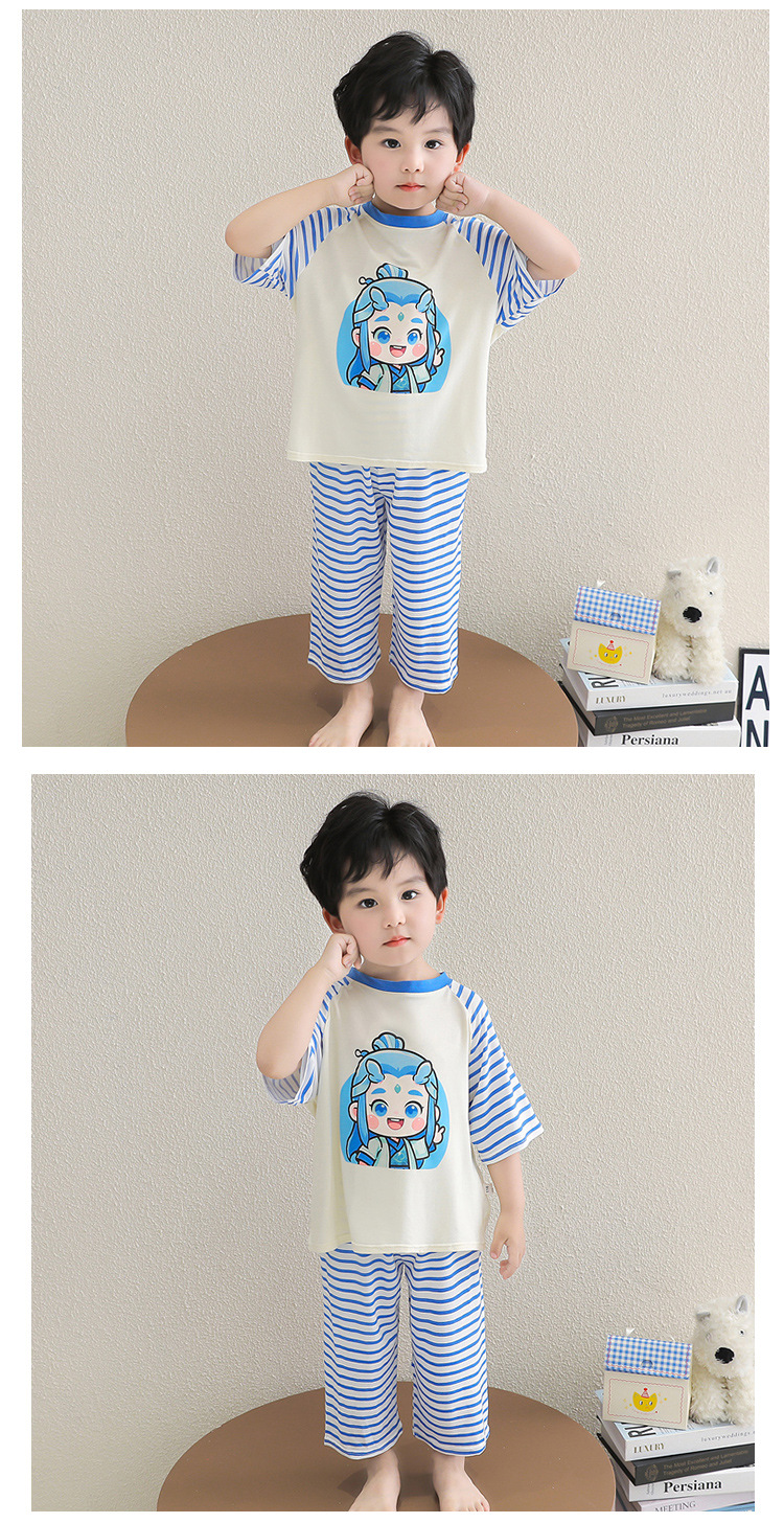 클리어런스 특가! 아동용 모달 홈웨어 남아 여아 유아 에어컨복 세트 만화 캐릭터 투피스 세트스토어 가기