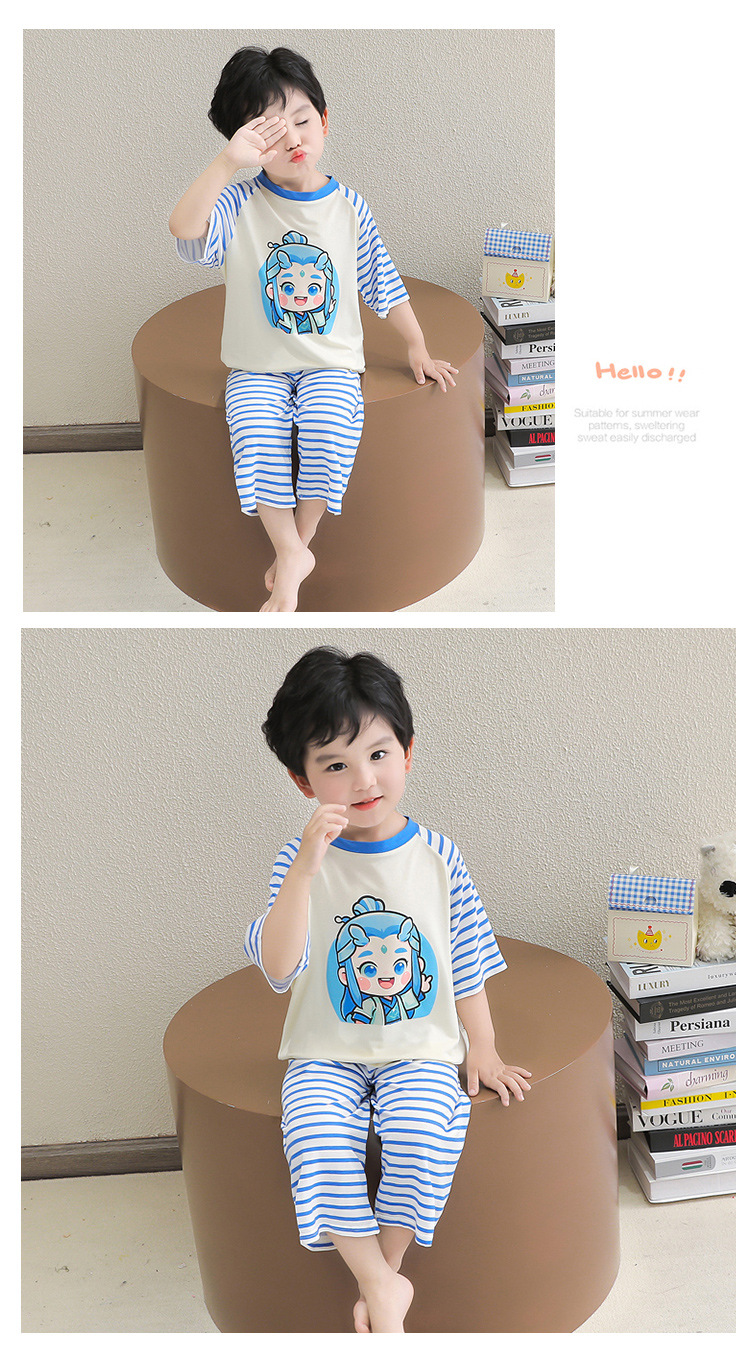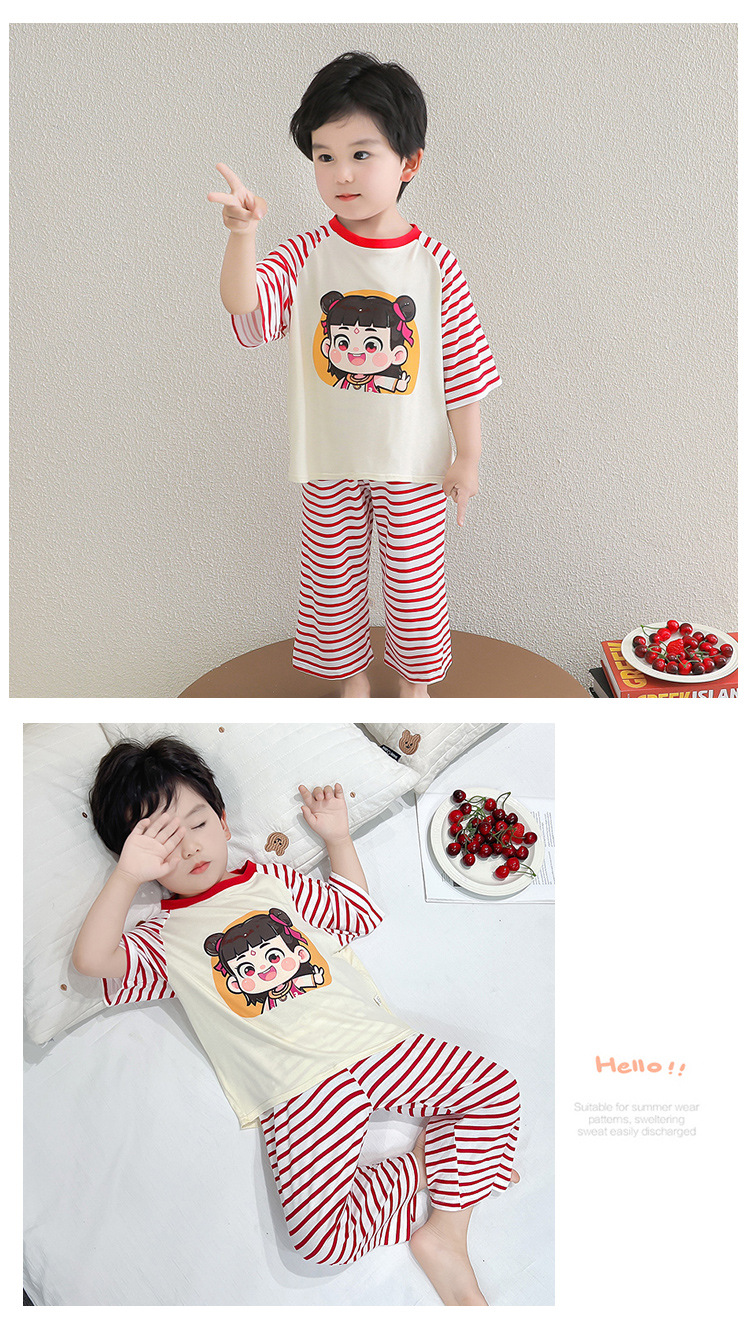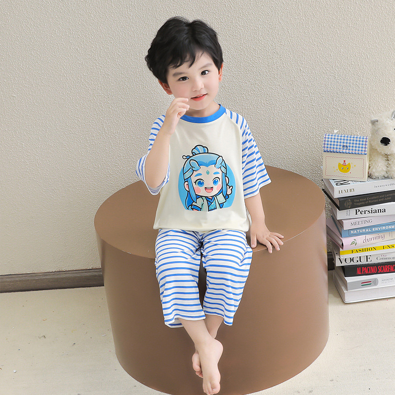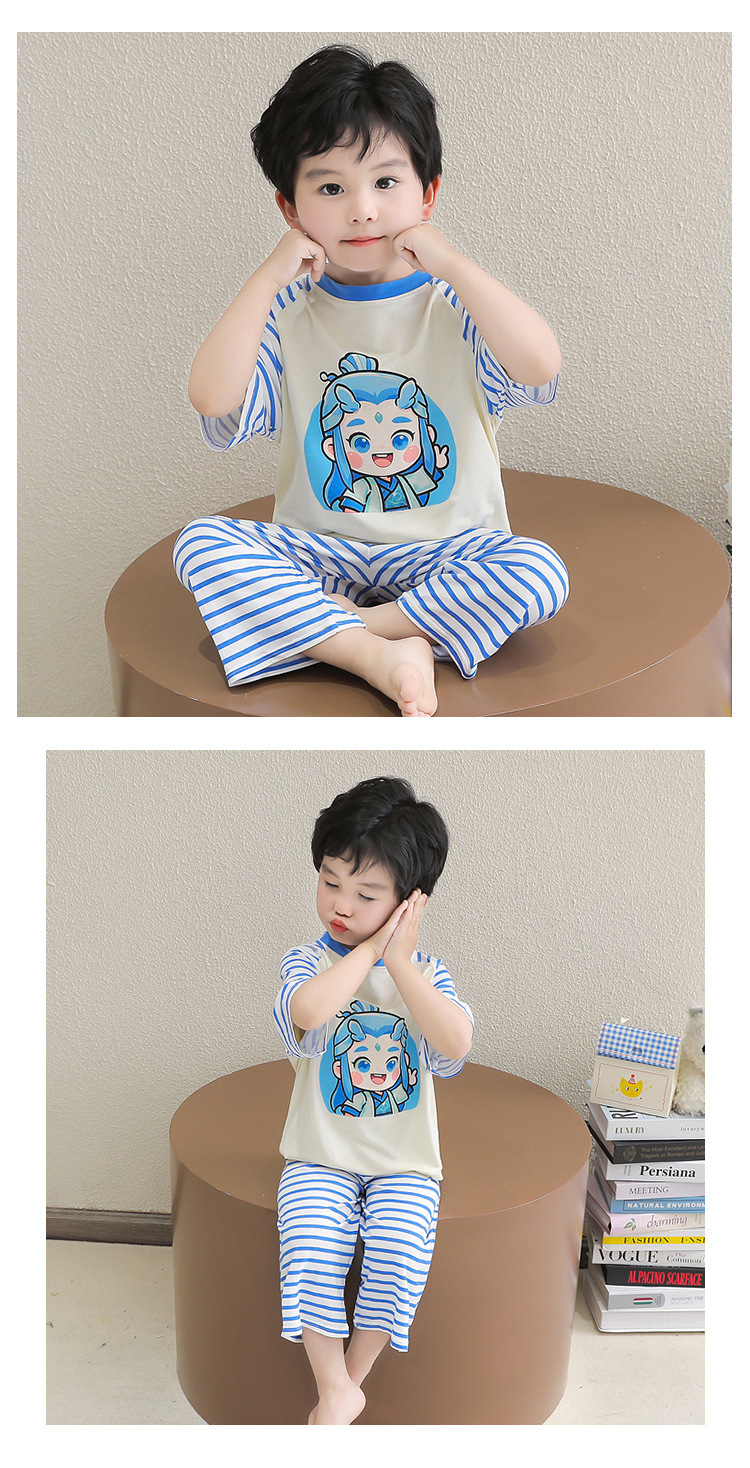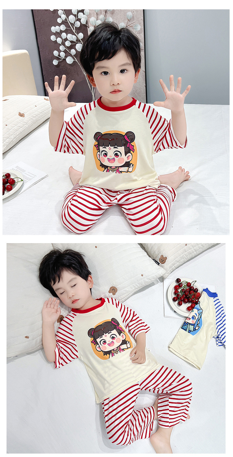 클리어런스 특가! 아동용 모달 홈웨어 남아 여아 유아 에어컨복 세트 만화 캐릭터 투피스 세트스토어 가기