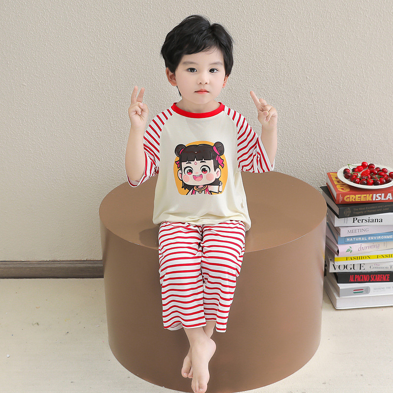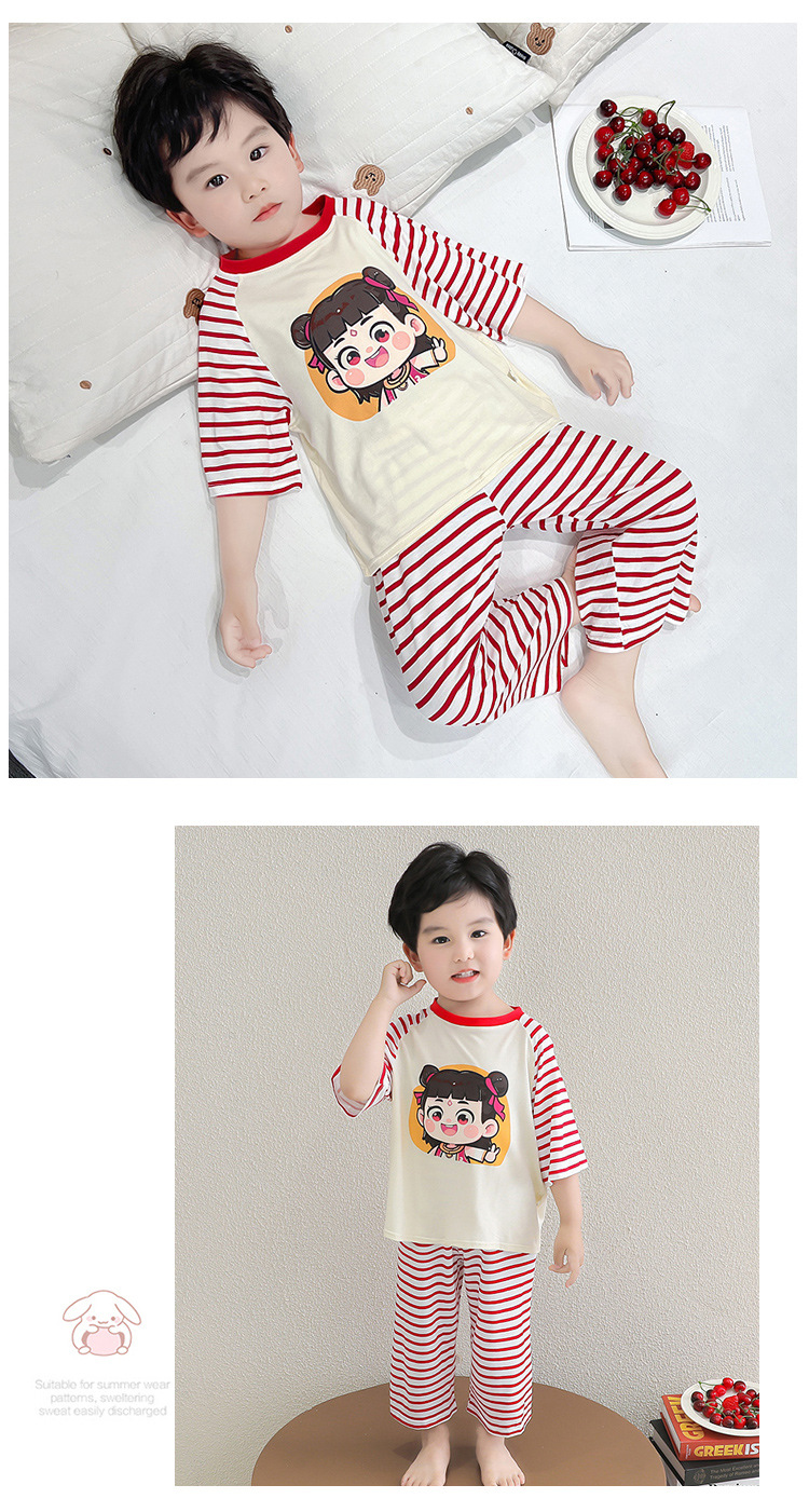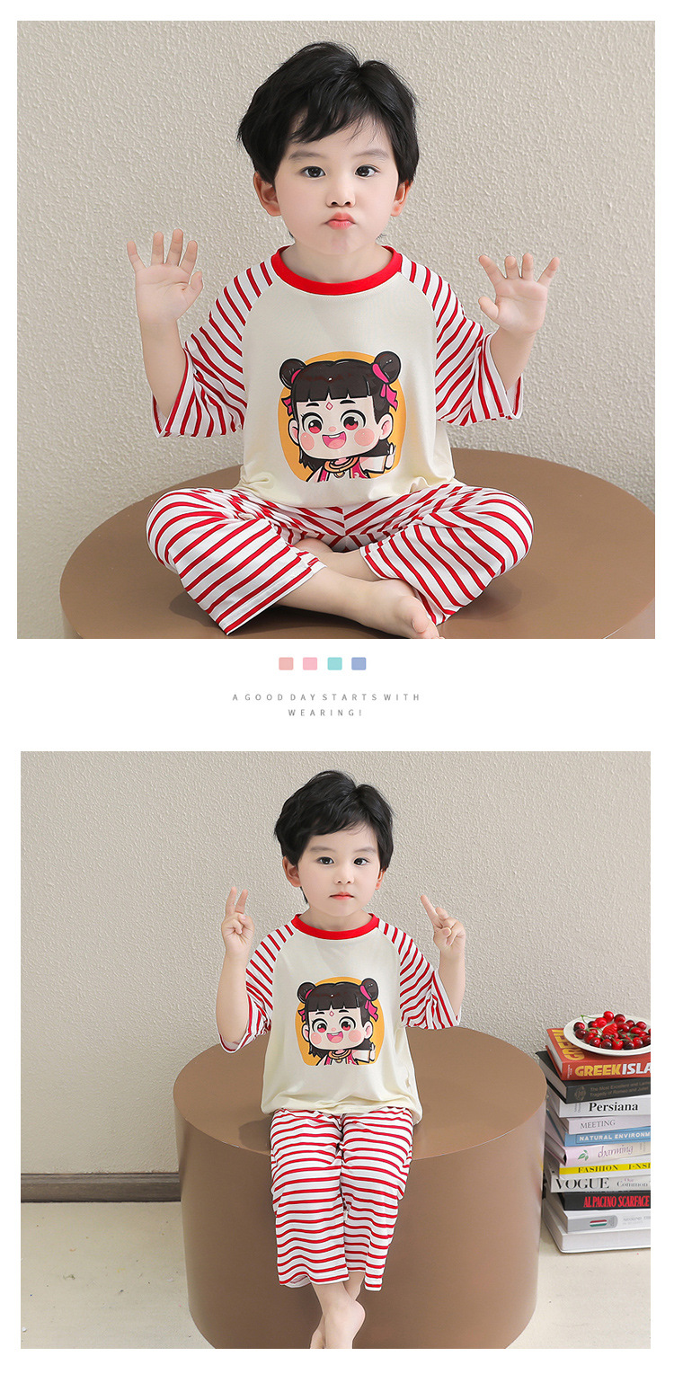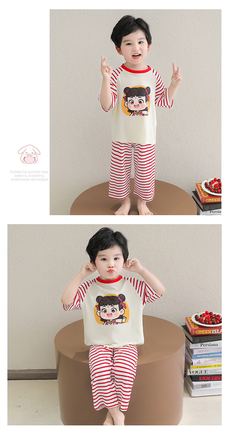 클리어런스 특가! 아동용 모달 홈웨어 남아 여아 유아 에어컨복 세트 만화 캐릭터 투피스 세트스토어 가기