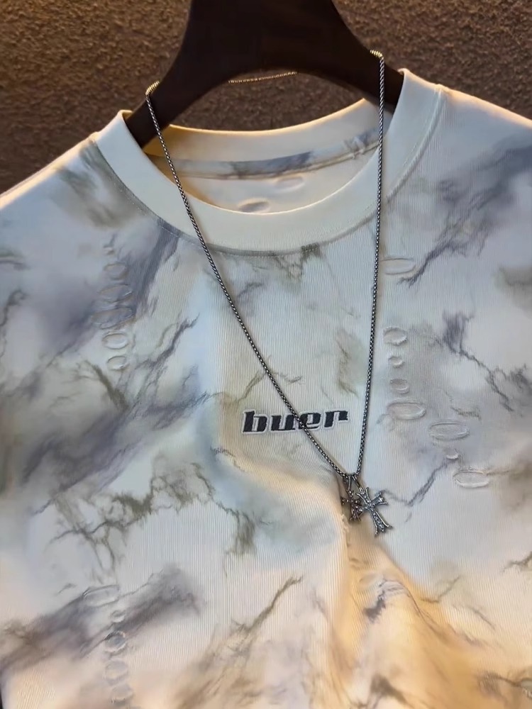 트렌디 한 브랜드 반팔 티셔츠 남자 여름 2025 새로운 느슨한 플러스 사이즈 하이 엔드 의류 미국 자카드 티셔츠 헤비스토어 가기