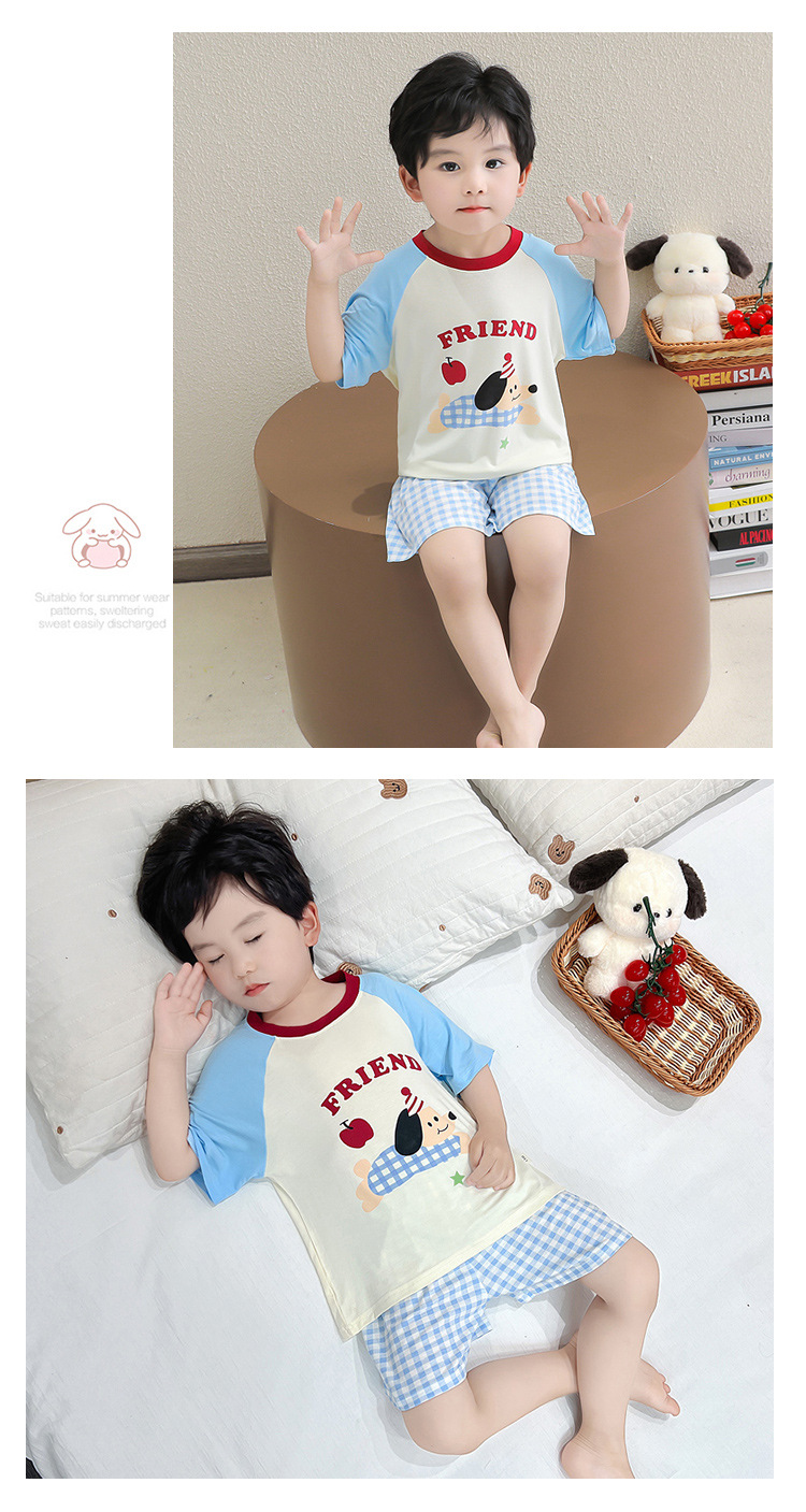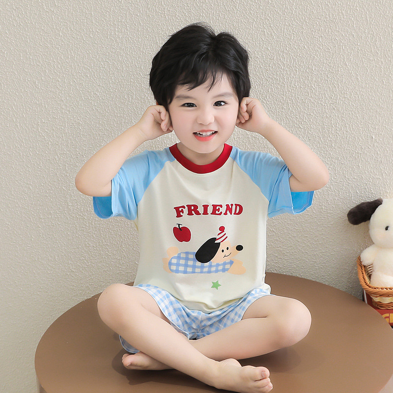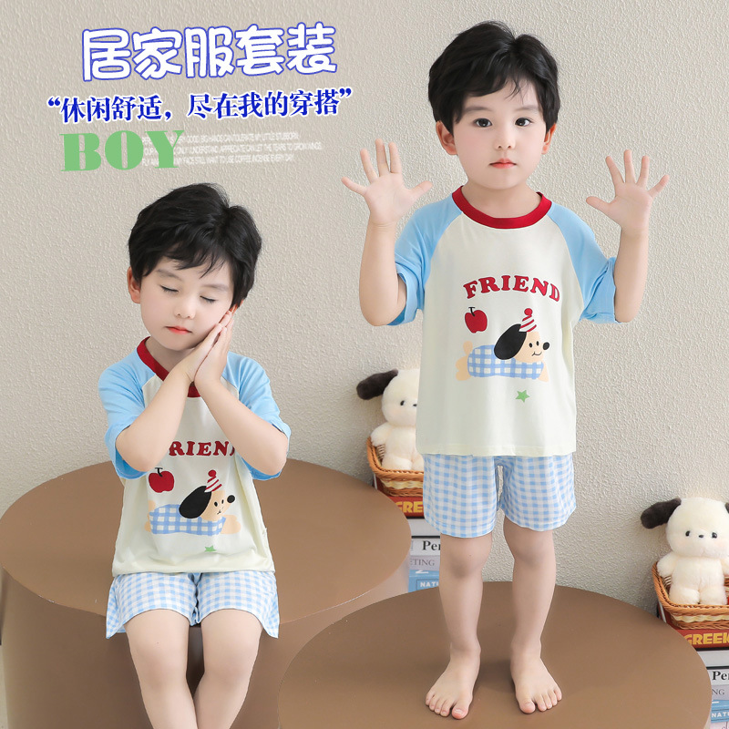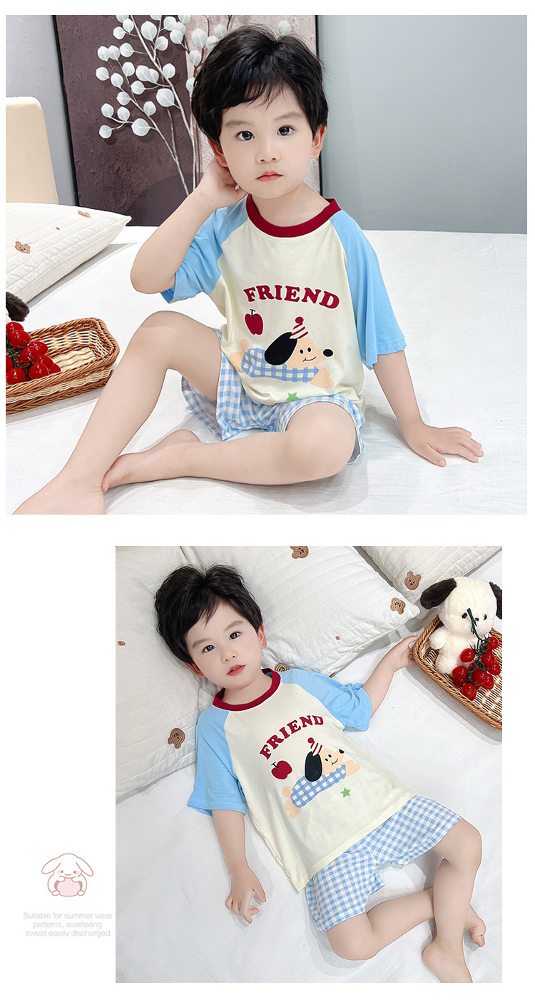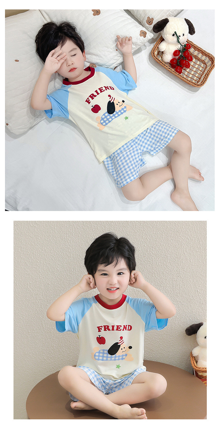 어린이 잠옷 여름 아기의 반팔 모달 잠옷 세트 소년 소녀 만화 아이스 실크 얇은 홈 옷스토어 가기