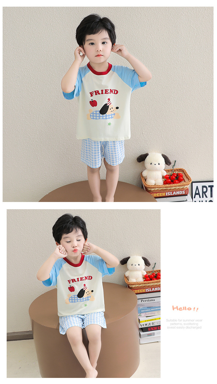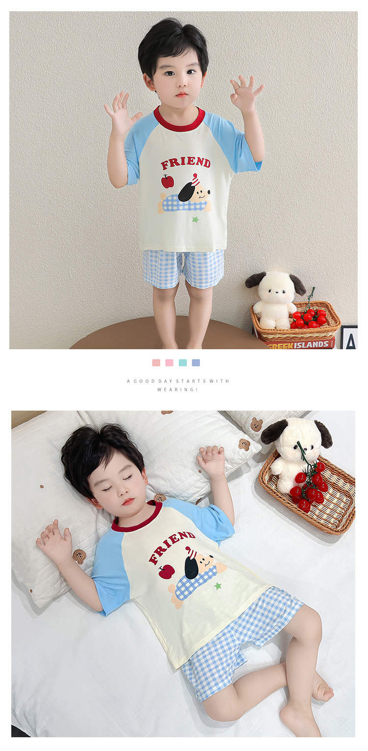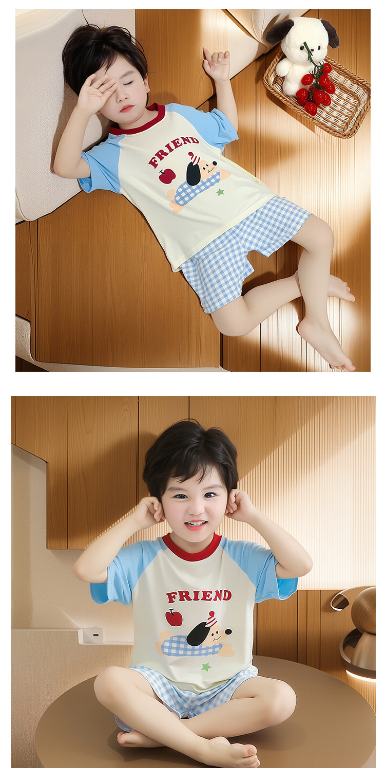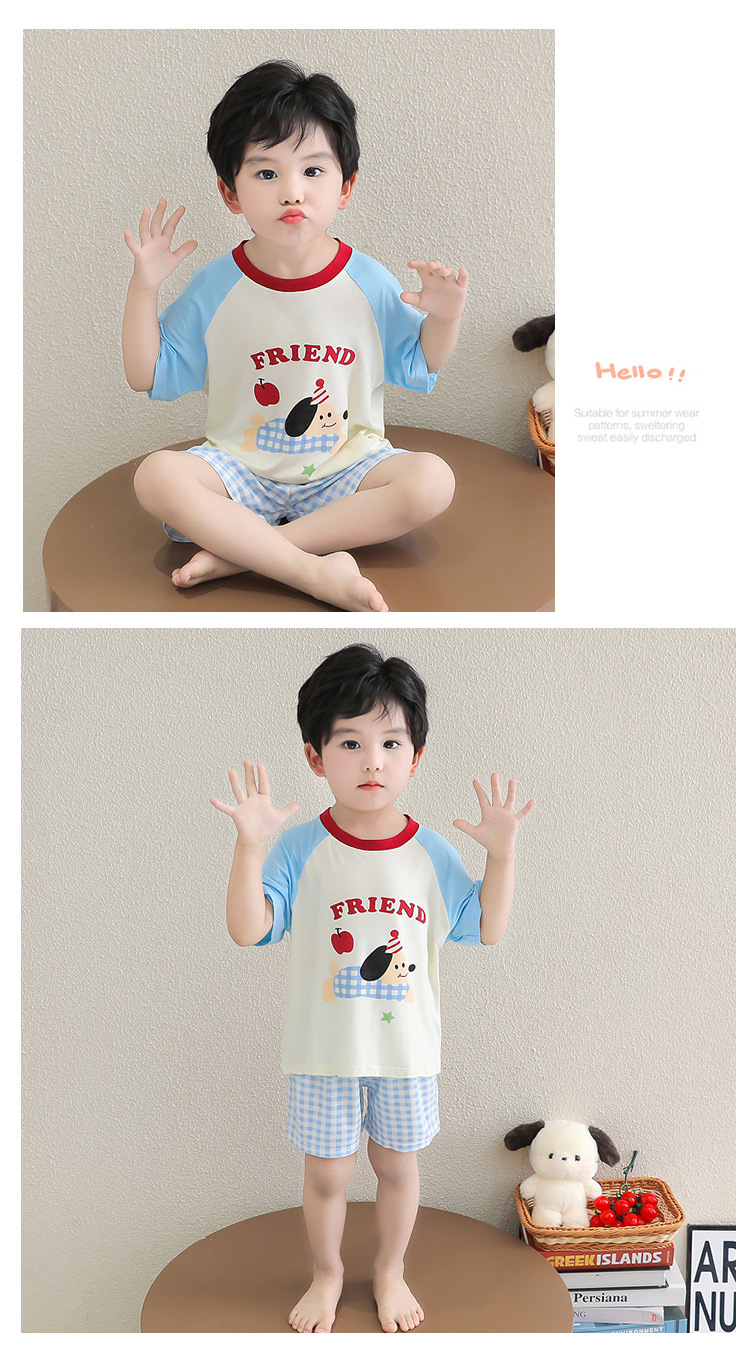 어린이 잠옷 여름 아기의 반팔 모달 잠옷 세트 소년 소녀 만화 아이스 실크 얇은 홈 옷스토어 가기
