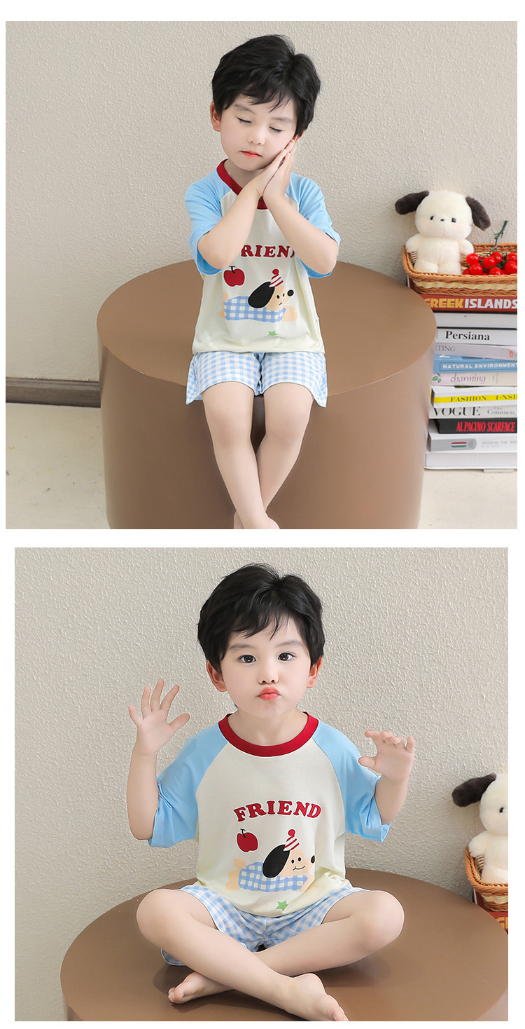 어린이 잠옷 여름 아기의 반팔 모달 잠옷 세트 소년 소녀 만화 아이스 실크 얇은 홈 옷