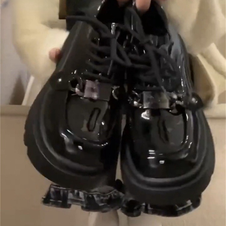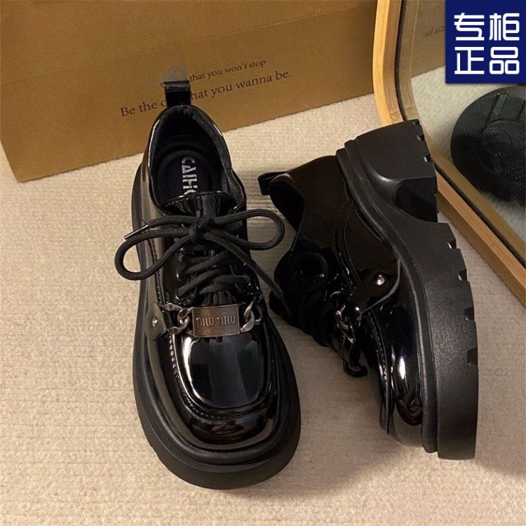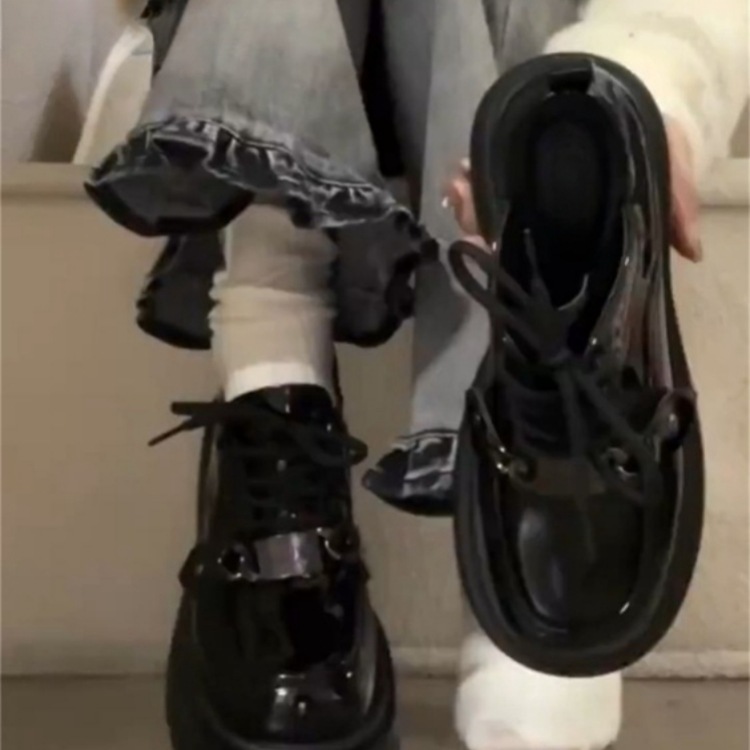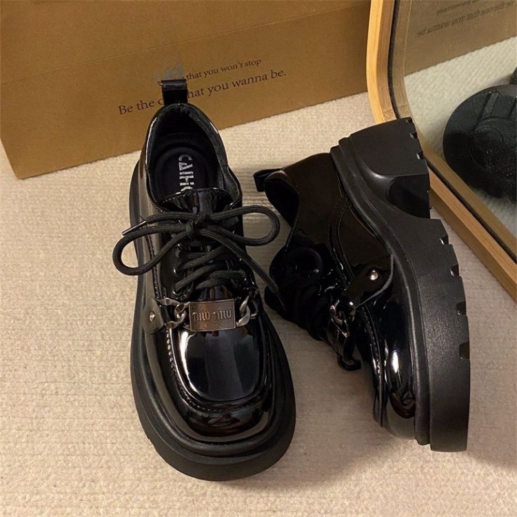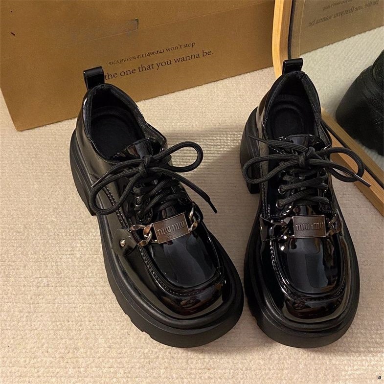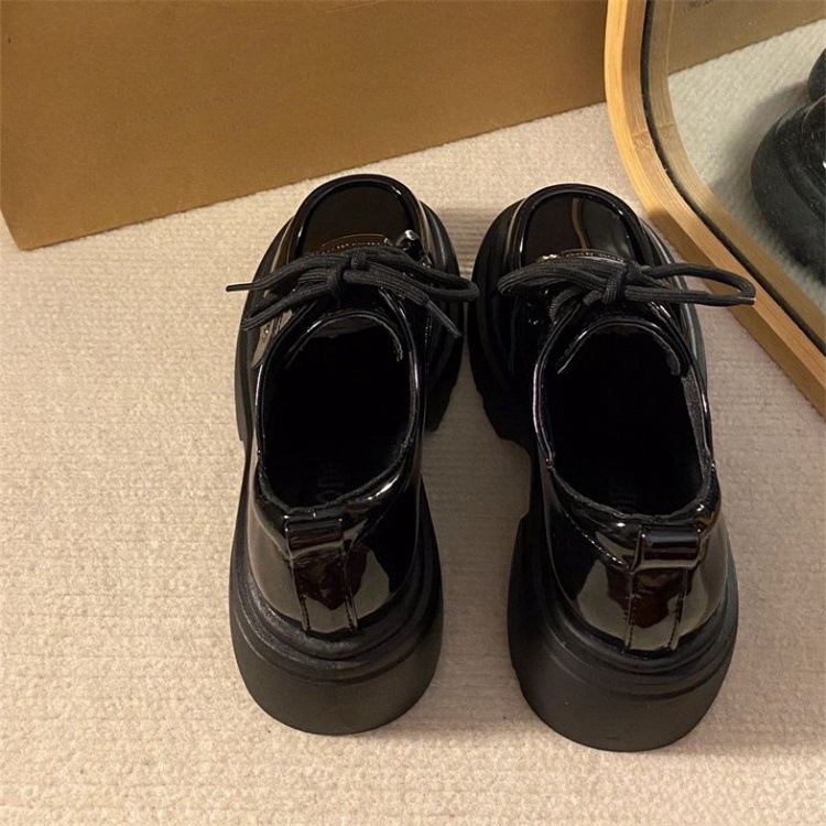 여성을위한 영국 스타일 복고풍 레이스 업 작은 가죽 신발 2025 새로운 봄, 여름 다목적 두꺼운 밑창 작업 신발스토어 가기