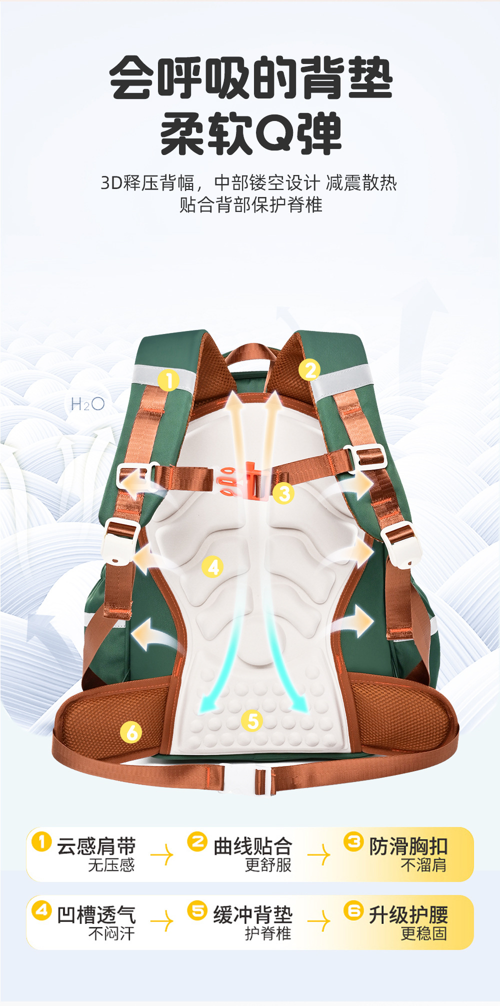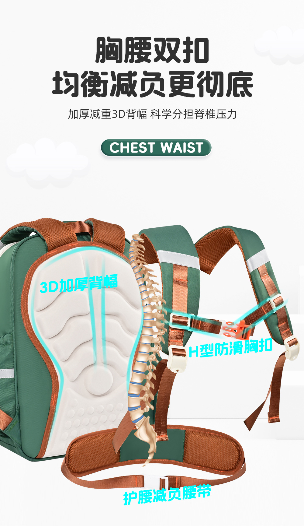 초등학생을위한 클라우드 책가방 1-6 학년 부담 감소 능선 보호 방수 멀티 격실 아동용 대용량 배낭