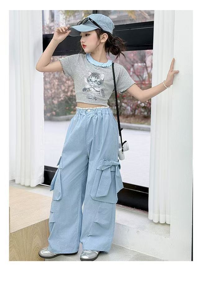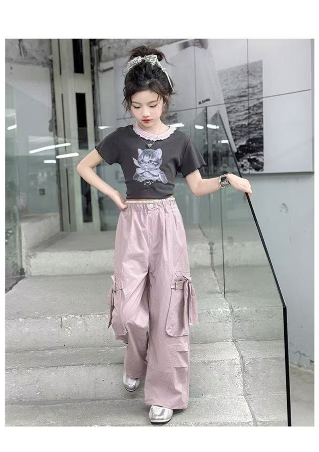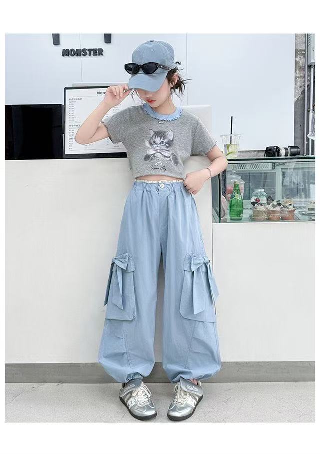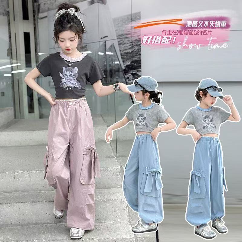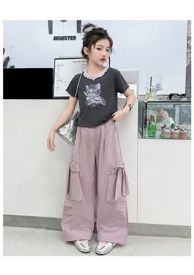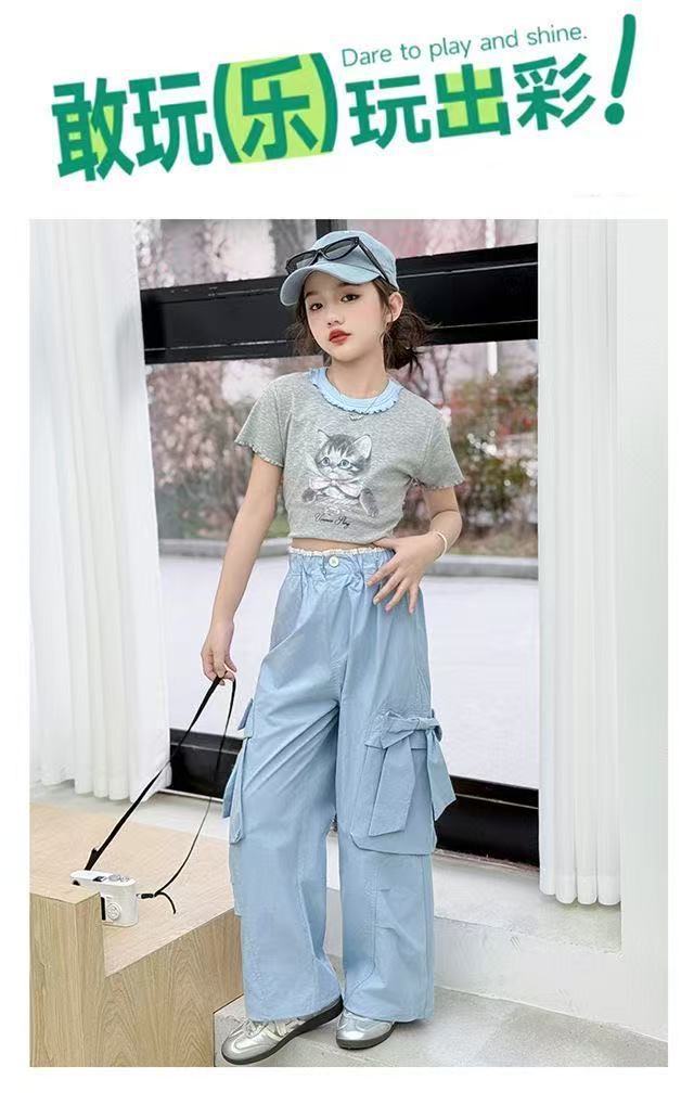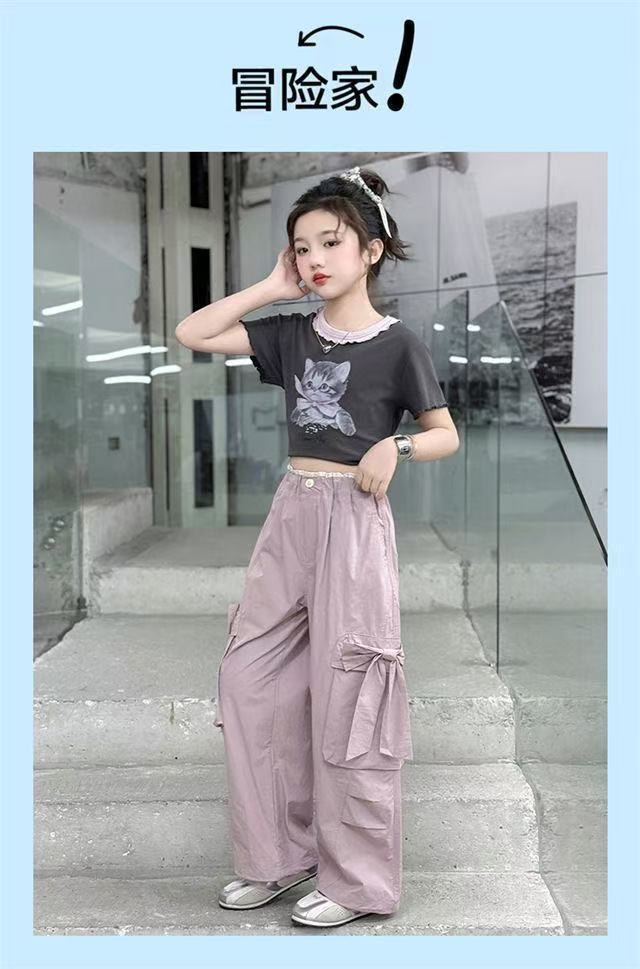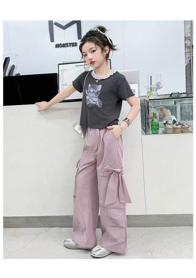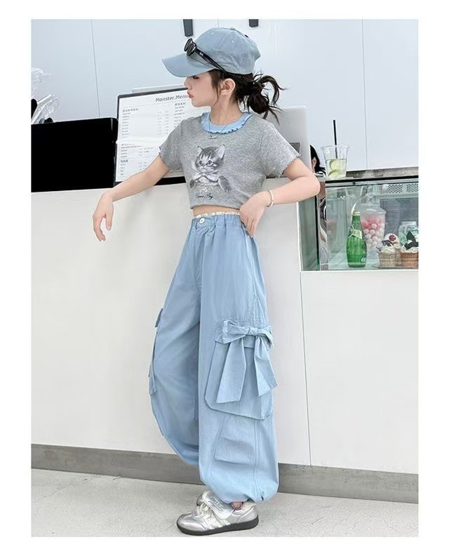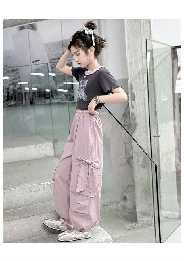 활 소녀의 귀여운 바지 2025 새로운 서양식 어린이 바지 소녀 큰 어린이 여름 얇은 넓은 다리 트렌디스토어 가기