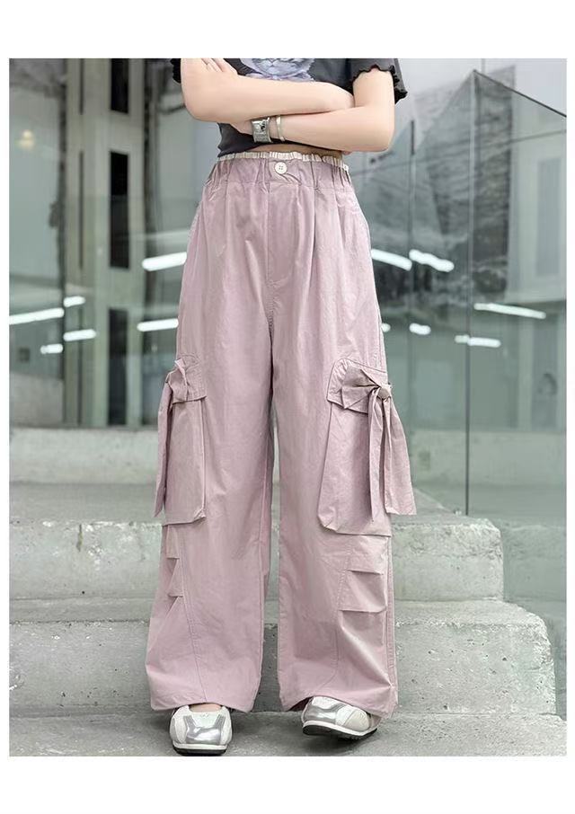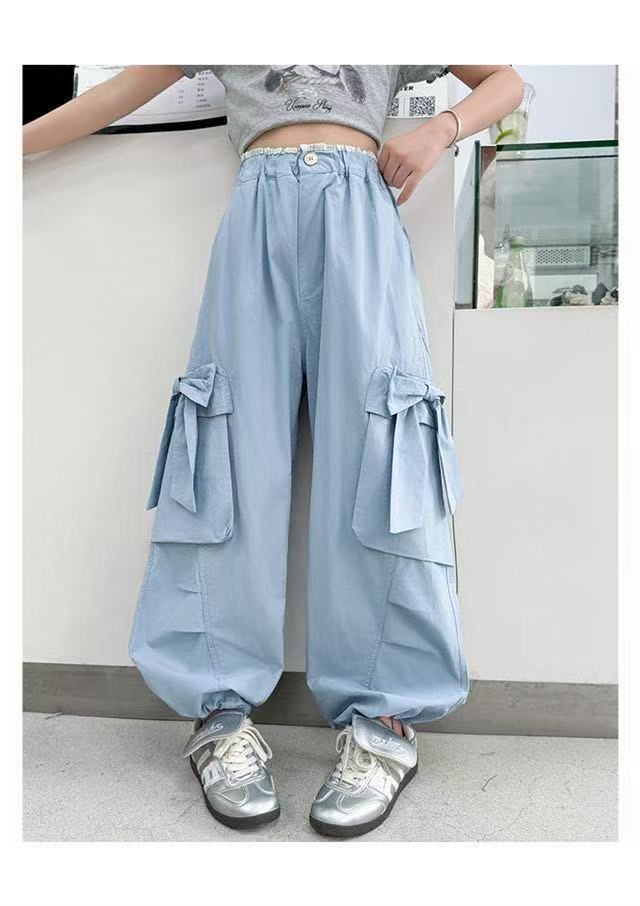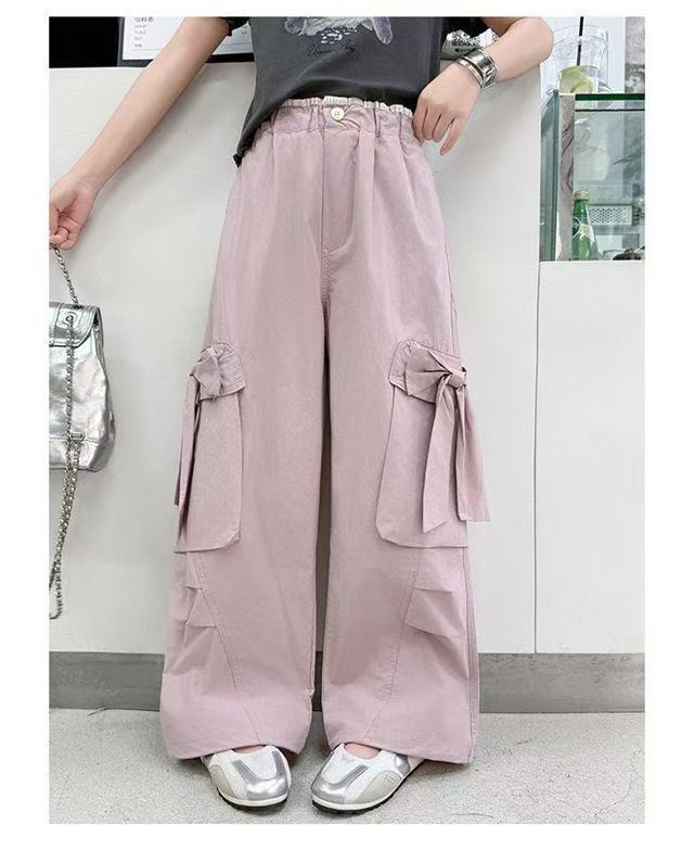 활 소녀의 귀여운 바지 2025 새로운 서양식 어린이 바지 소녀 큰 어린이 여름 얇은 넓은 다리 트렌디