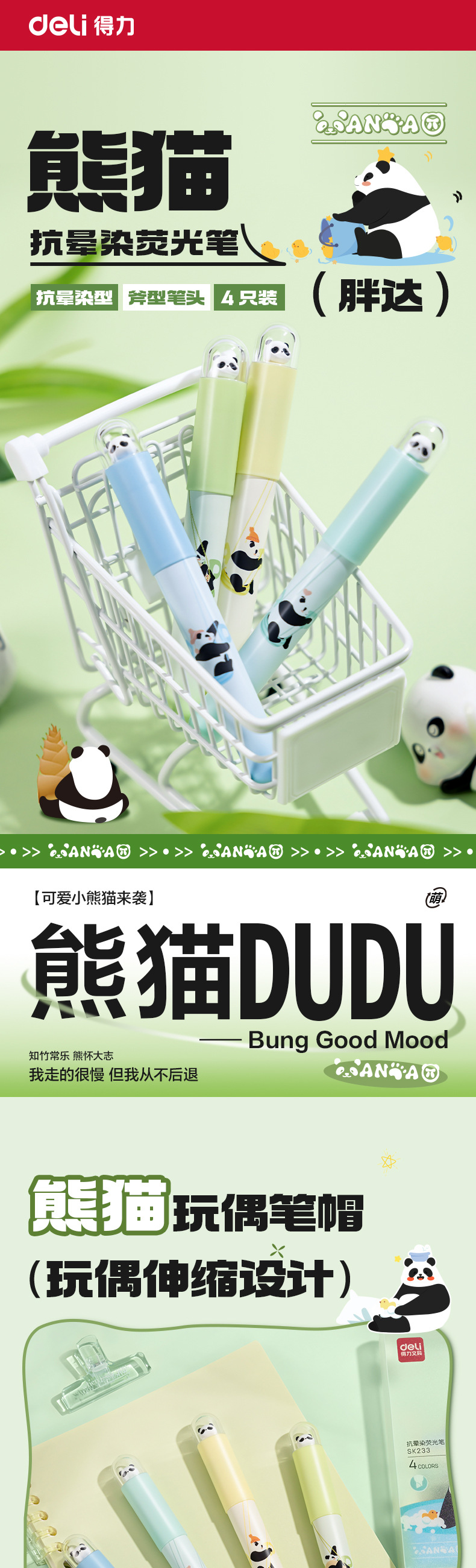 델리 SK233 학생들이 핵심 포인트를 표시할 수 있는 팬더 형광펜, 얼룩 방지 마커, 재미있는 숨바꼭질 펜스토어 가기