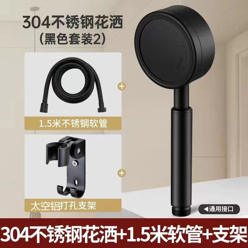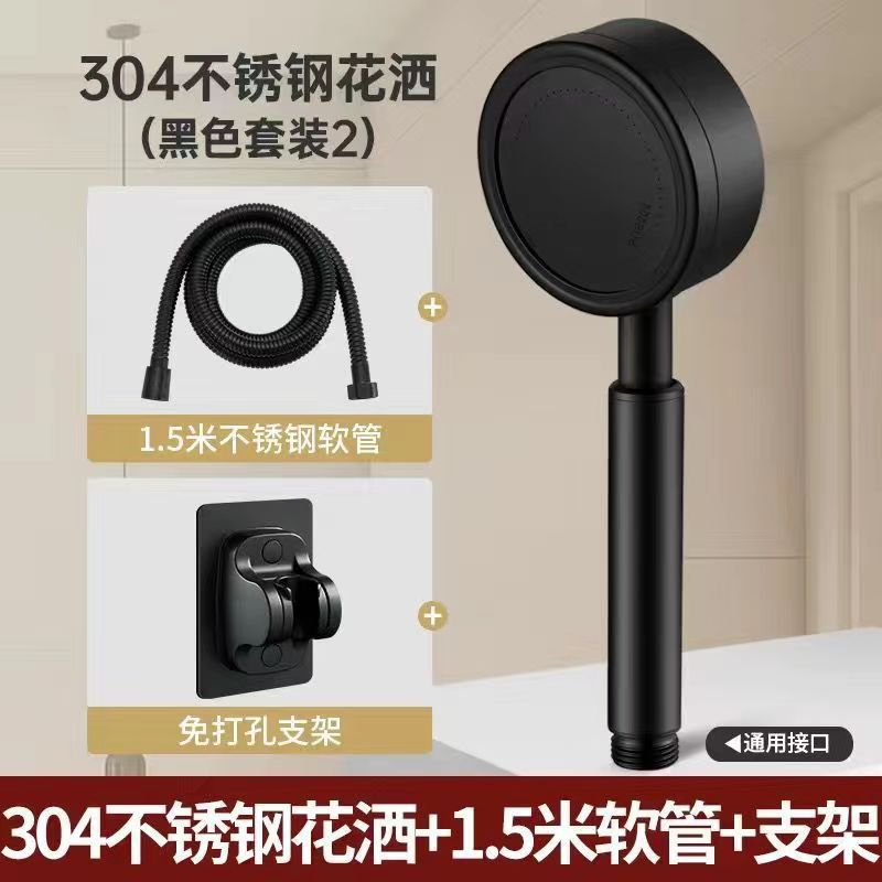 • 304 블랙 핸드 샤워기 + 블랙 대형 표면 + 블랙 1.5m 샤워 파이프