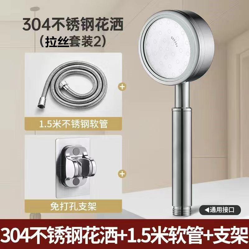 • 304 브러시드 핸드 샤워기 + 전기 도금 대형 표면 + 304 브러시드 1.5m 샤워 파이프