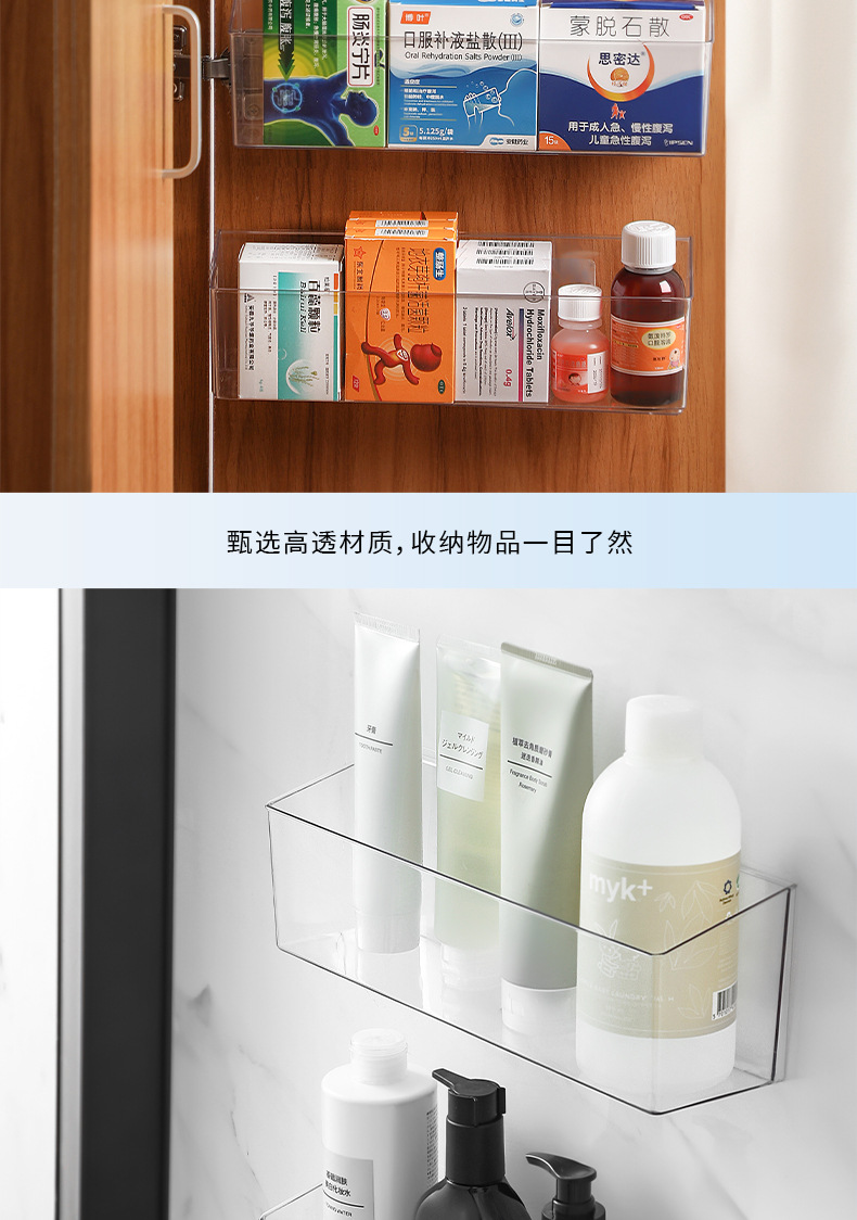 가정용 의약품 보관 상자 투명 격실 화장품 화장실 캐비닛 도어 선반 약 벽 장착 보관 상자스토어 가기