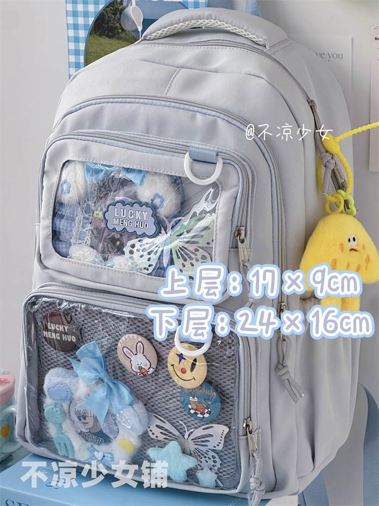일본 2차원 만화 쇼 여학생용 책가방, 대용량 백팩, 투명 바지, 아기 가방
