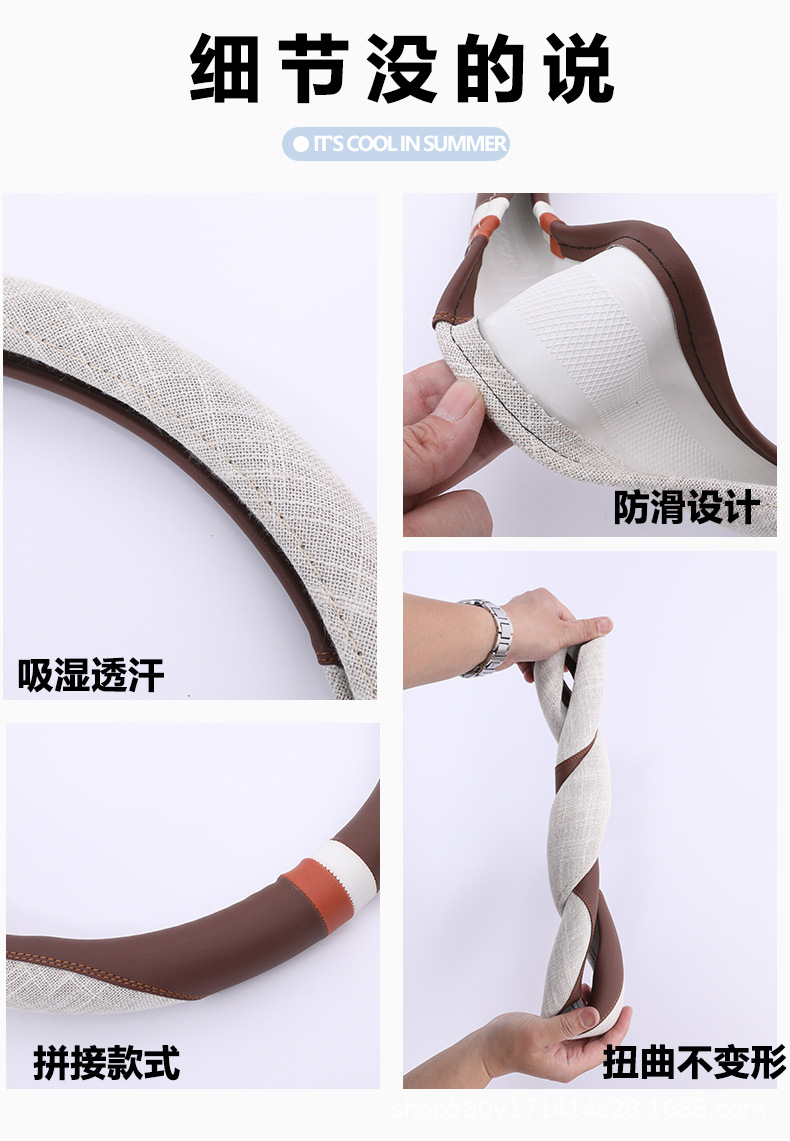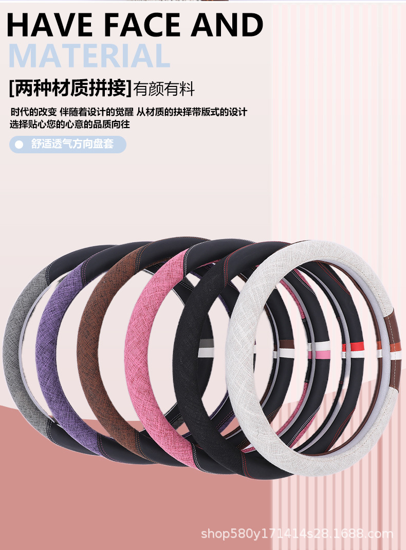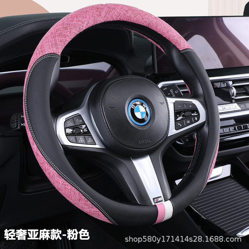 스팟 유통 라이트 럭셔리 린넨 자동차 핸들 커버, 사계절 범용 핸들 커버, 통기성 및 땀 흡수 린넨 핸들 커버