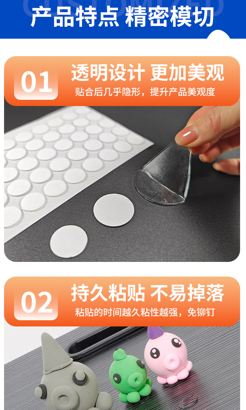 공장 라운드 투명 원활한 양면 접착제 장식품 손으로 만든 나노 접착 스티커 움직일 수있는 잔류 접착제 아크릴 양면 접착제