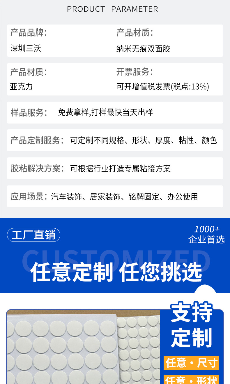 공장 라운드 투명 원활한 양면 접착제 장식품 손으로 만든 나노 접착 스티커 움직일 수있는 잔류 접착제 아크릴 양면 접착제스토어 가기