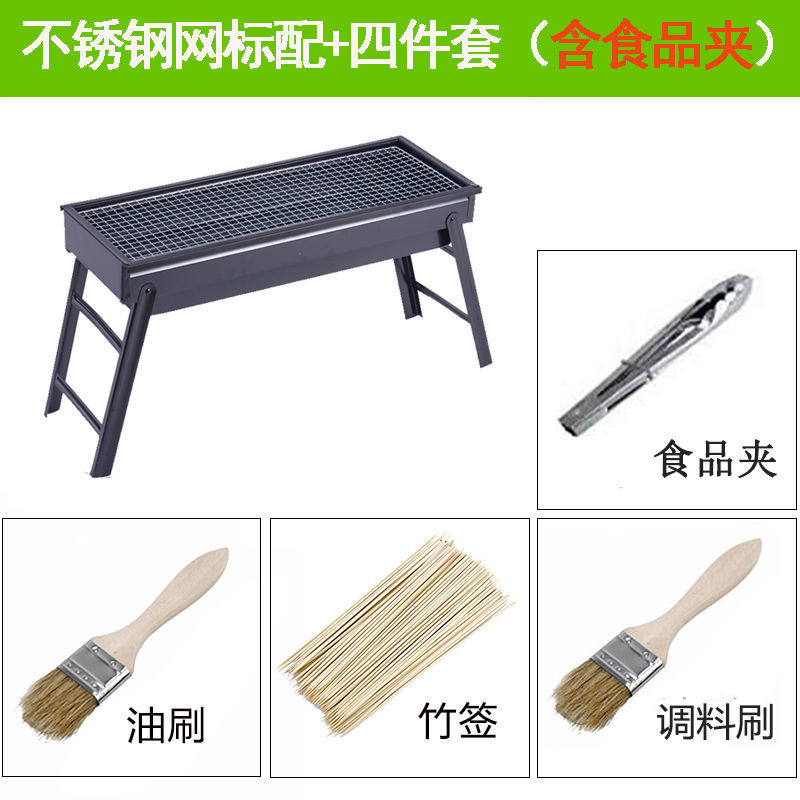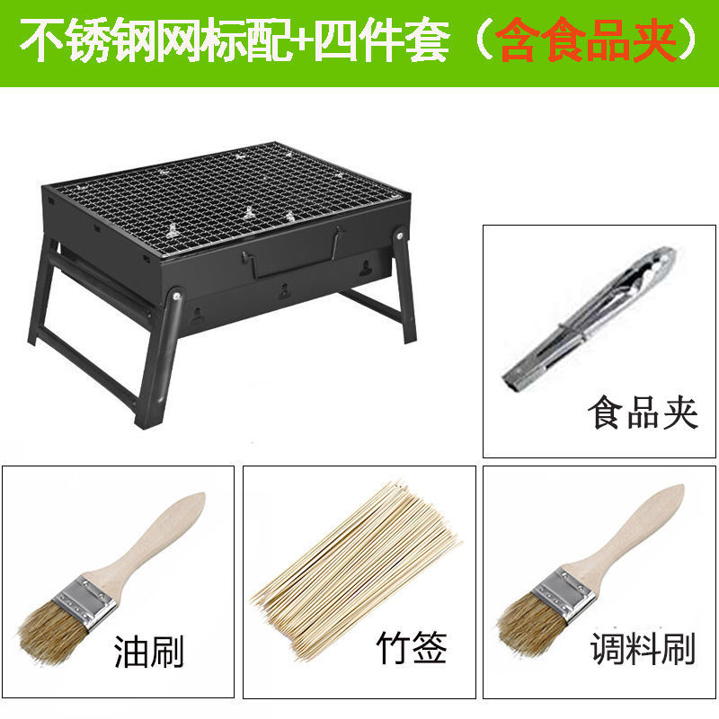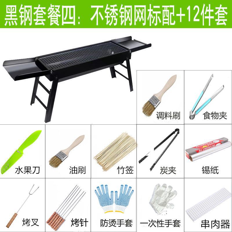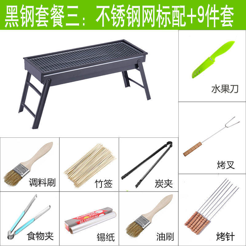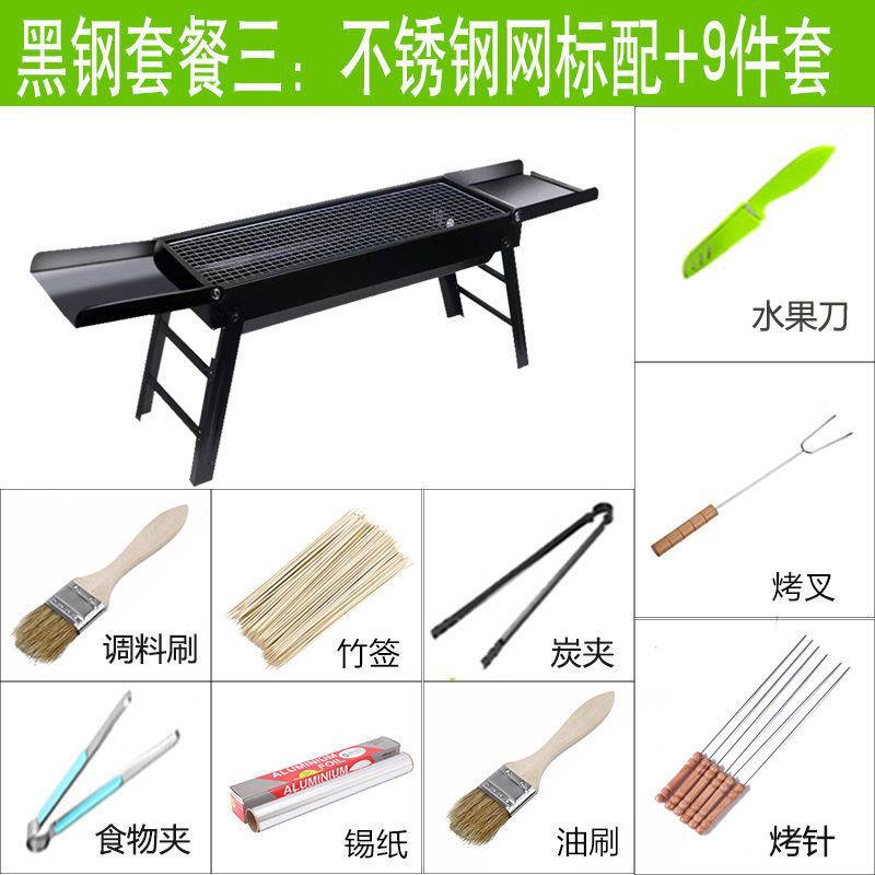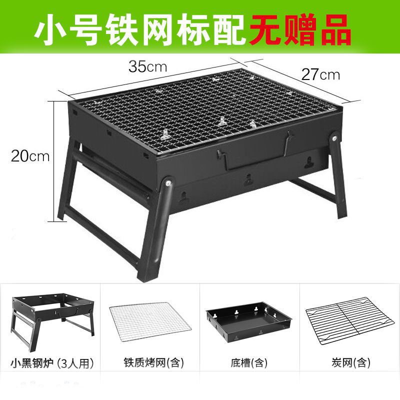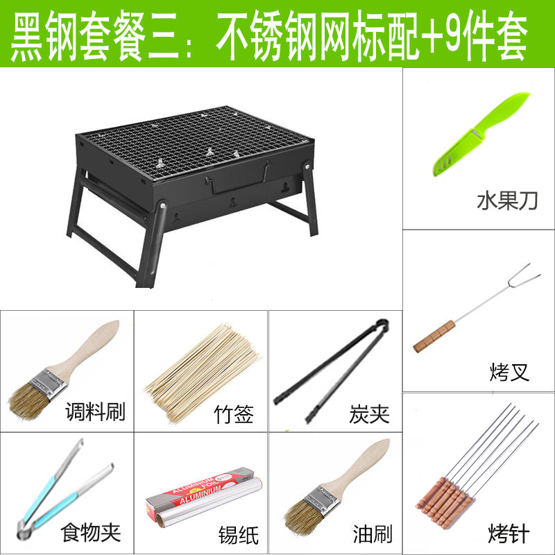 바베큐 그릴 야외 숯불 바베큐 스토브 가정용 휴대용 바베큐 두꺼운 바베큐 상자 도구 세트 3-1 앰비 링
