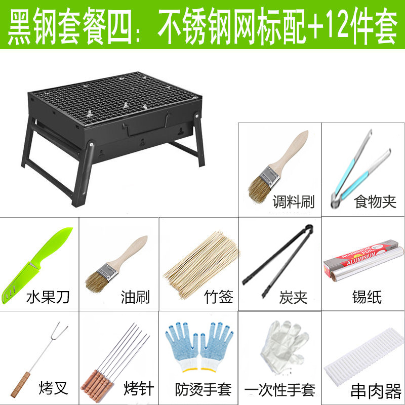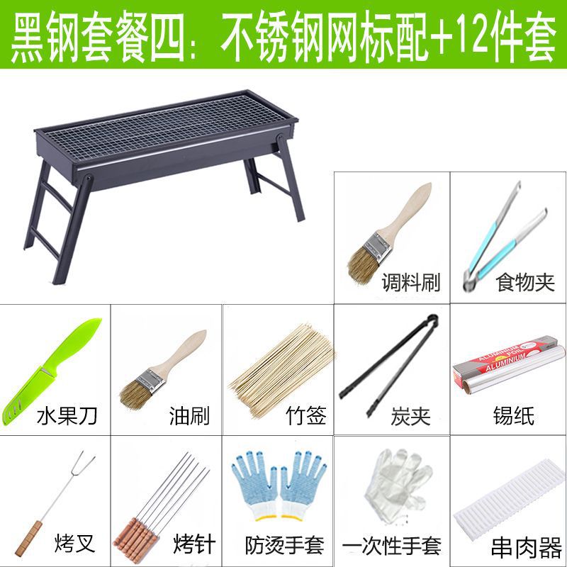 • 소형(35x27x20cm) 1~3인용 - 블랙 스틸 패키지 4개: 스테인리스 스틸 메쉬 + 12개 세트✦✦
