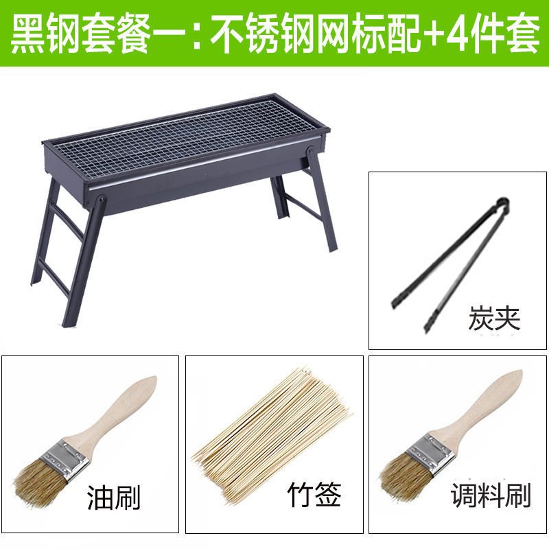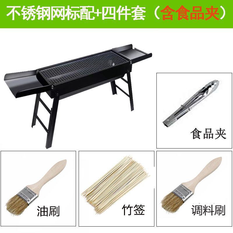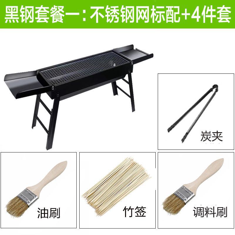 바베큐 그릴 야외 숯불 바베큐 스토브 가정용 휴대용 바베큐 두꺼운 바베큐 상자 도구 세트 3-1 앰비 링스토어 가기