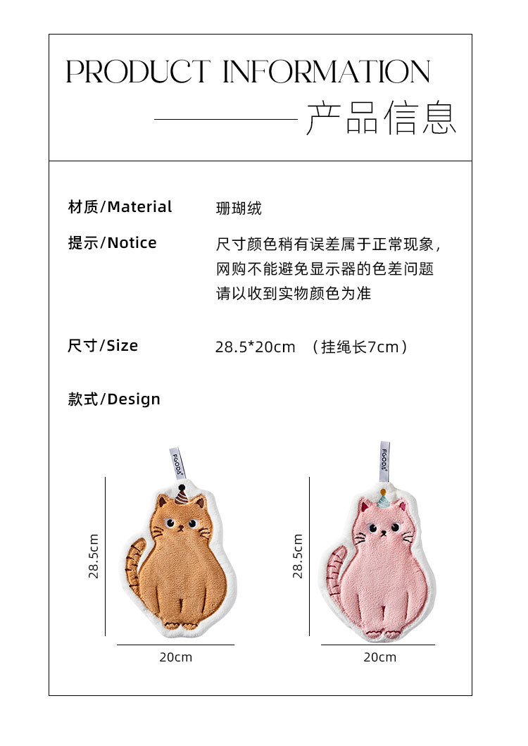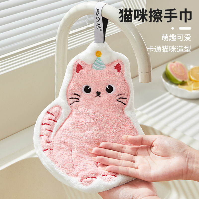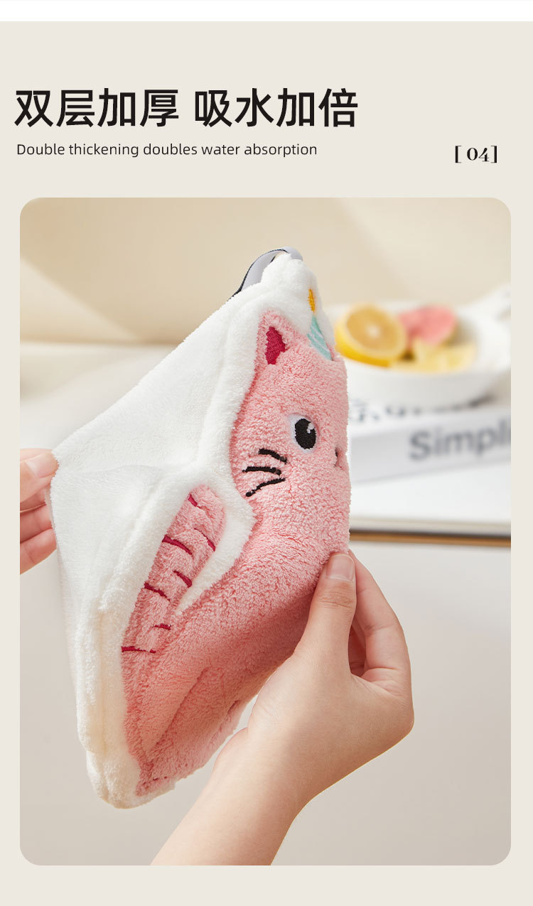 새로운 스타일의 가정용 손수건, 귀여운 만화 고양이 스타일, 편리하고 걸 수 있는 이중층 두꺼운 속건성 흡수성 손수건