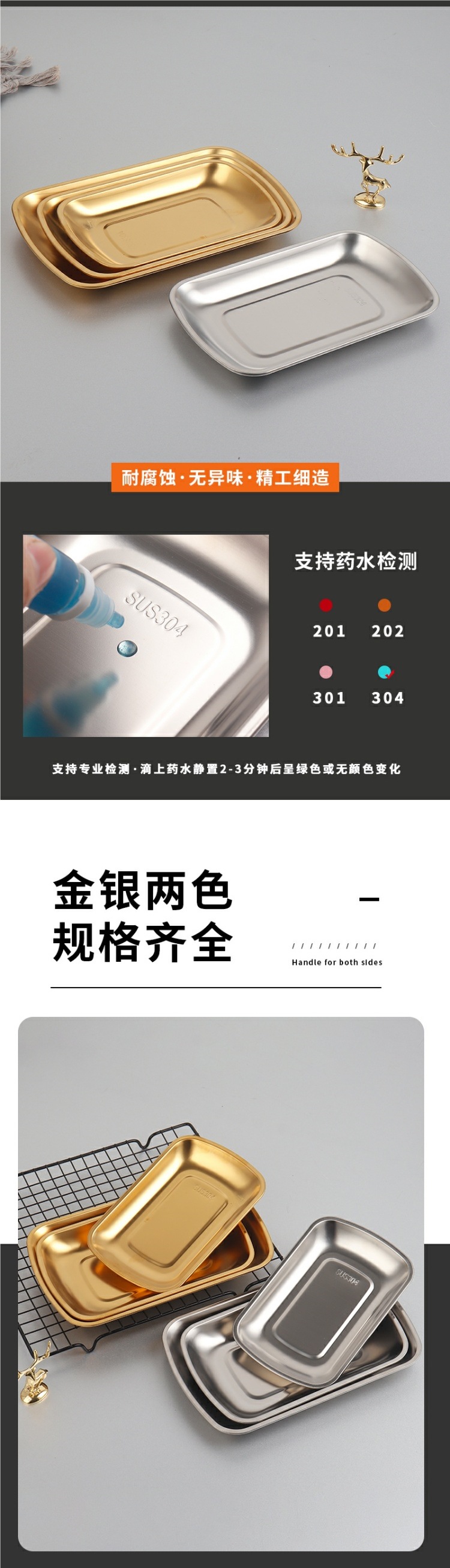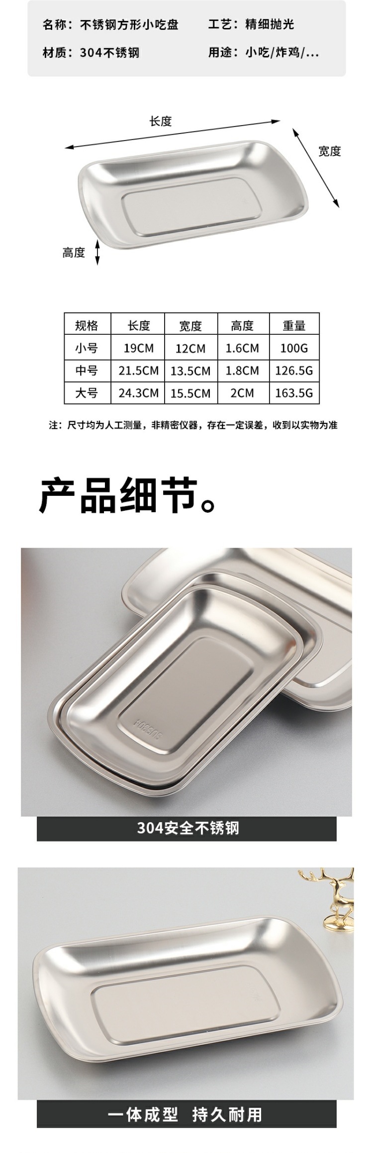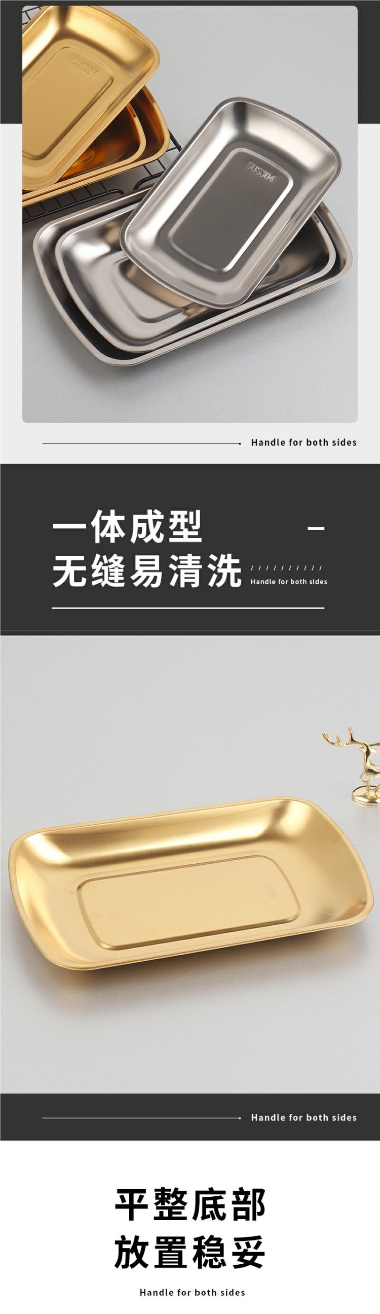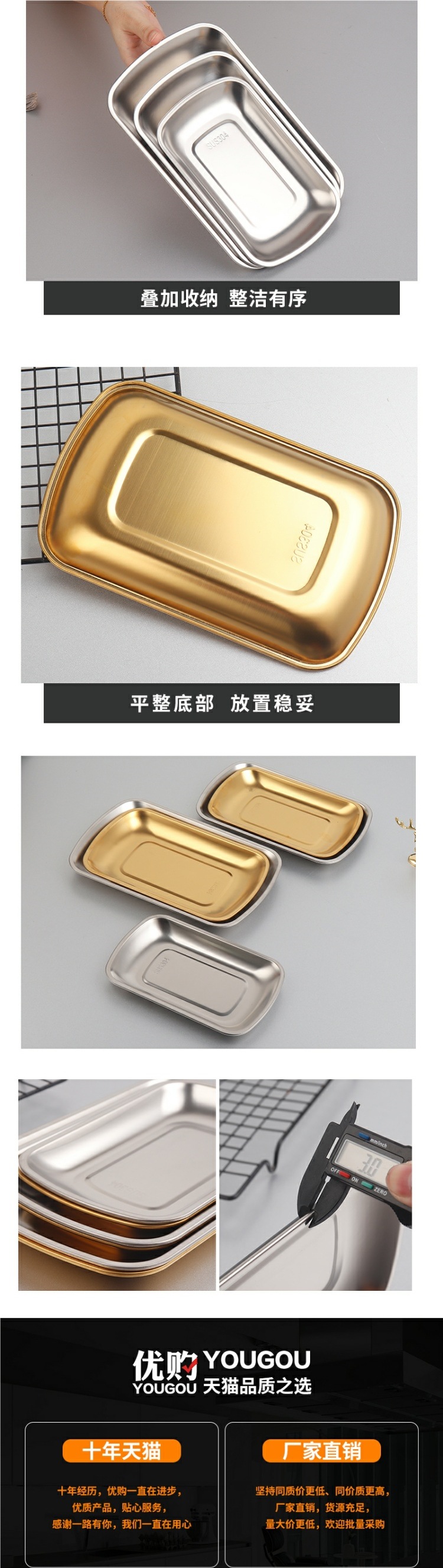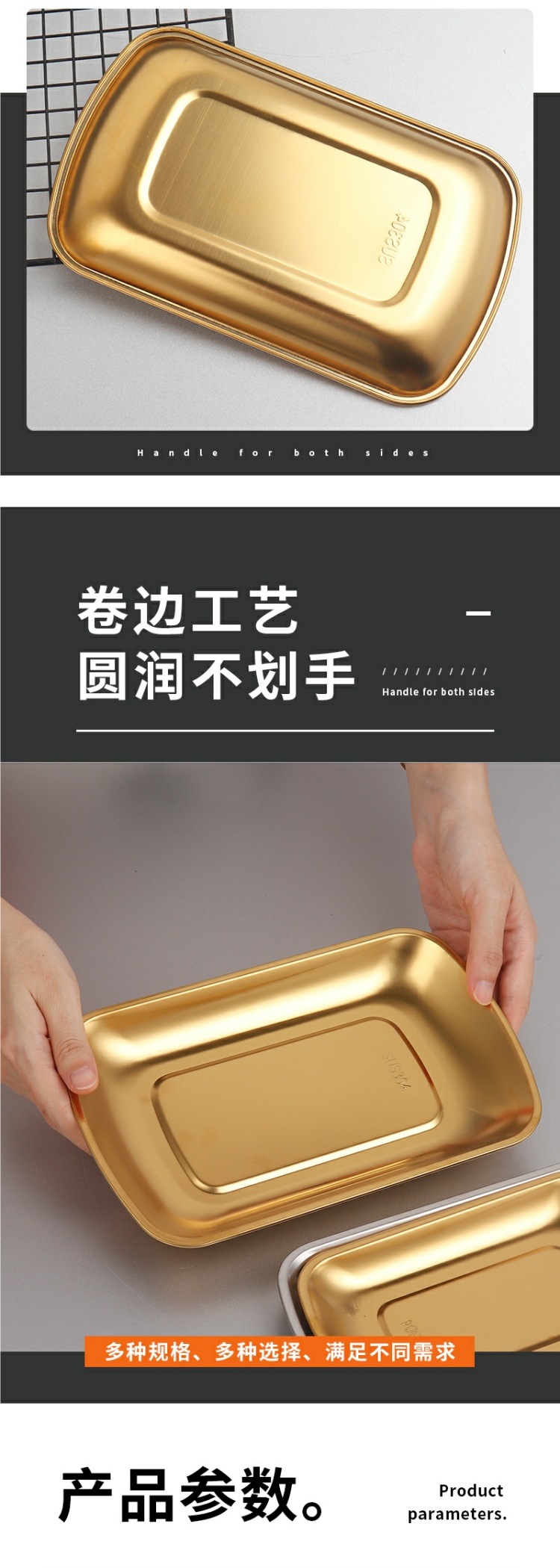 304 스테인레스 스틸 접시 직사각형 바베큐 바베큐 접시 차가운 요리 접시 소시지 롤 트레이 스낵 접시 황금 저녁 식사 접시스토어 가기