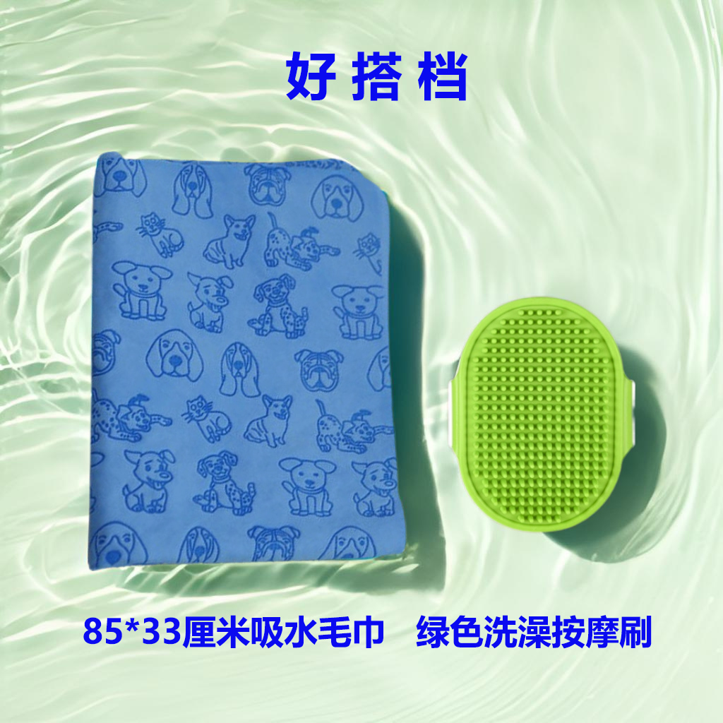 • 대형 파란색 흡수성 수건 + 녹색 목욕 브러시