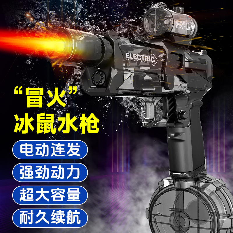 跨境火光小冰鼠电动水枪冒火灯光watergun電動水槍夏季玩水玩具