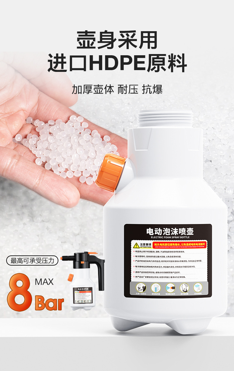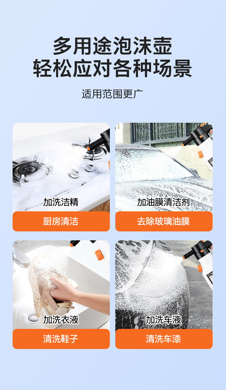 2.喷壶适用于家庭清洁和汽车清洁喷洒无腐蚀性液体。请勿用于喷洒酸液,酒精,汽油等强腐蚀性液体。