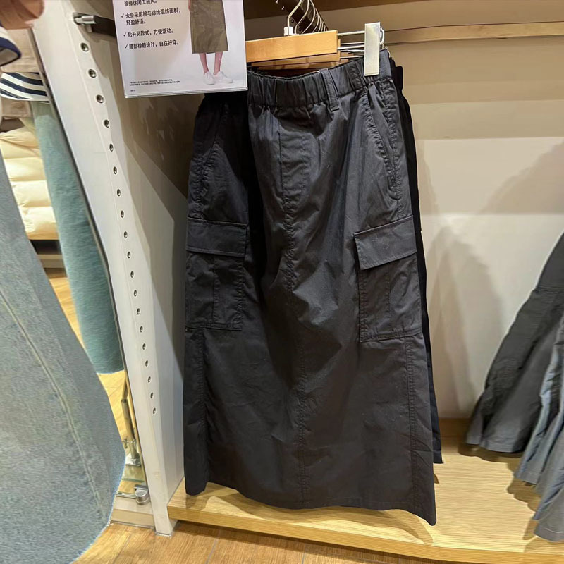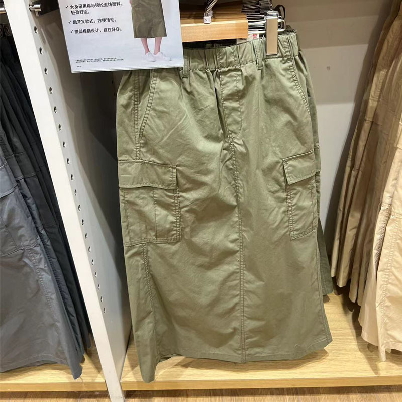 데일리 캐주얼 워크웨어 스커트 레트로 슬릿 스커트 더블 포켓 루즈한 신축성 있는 허리 힙 롱 스커트 464890스토어 가기